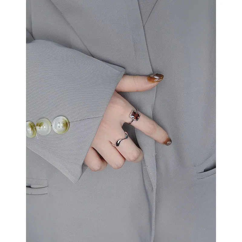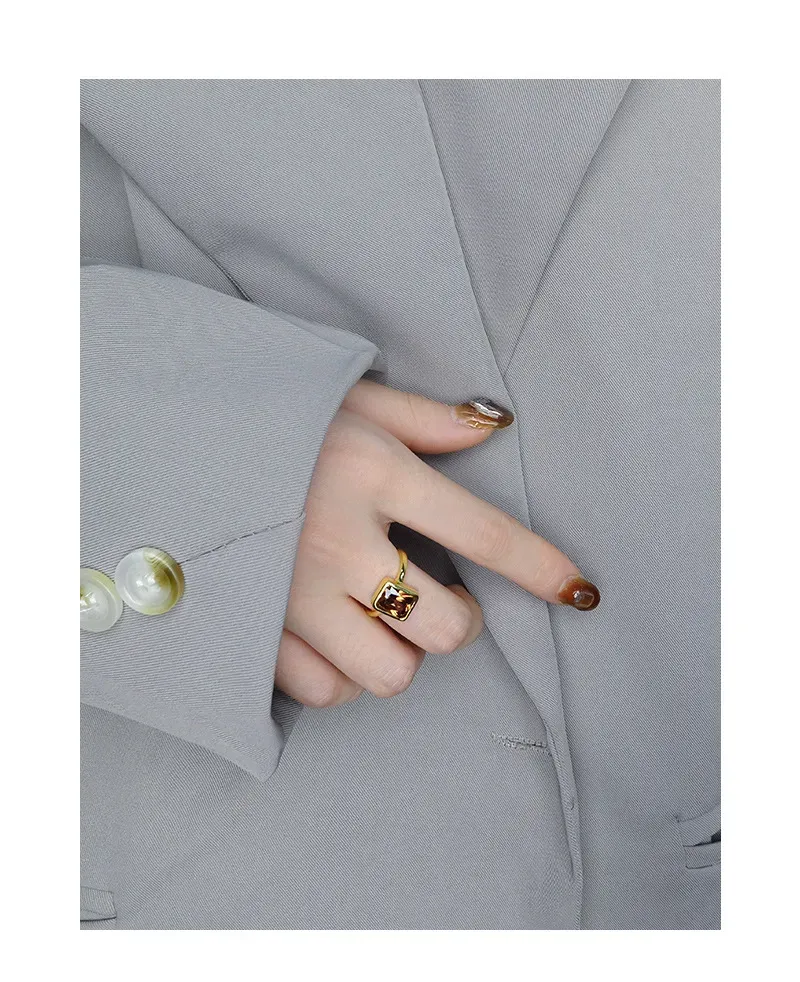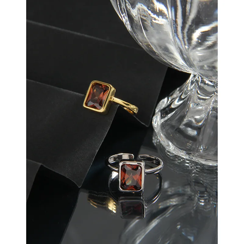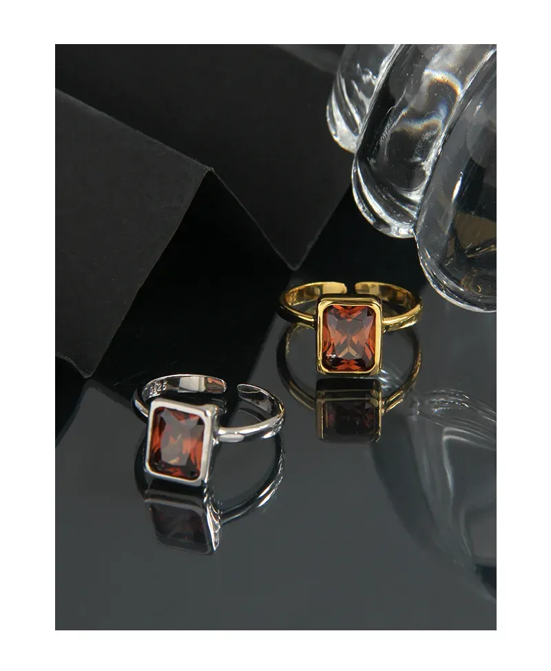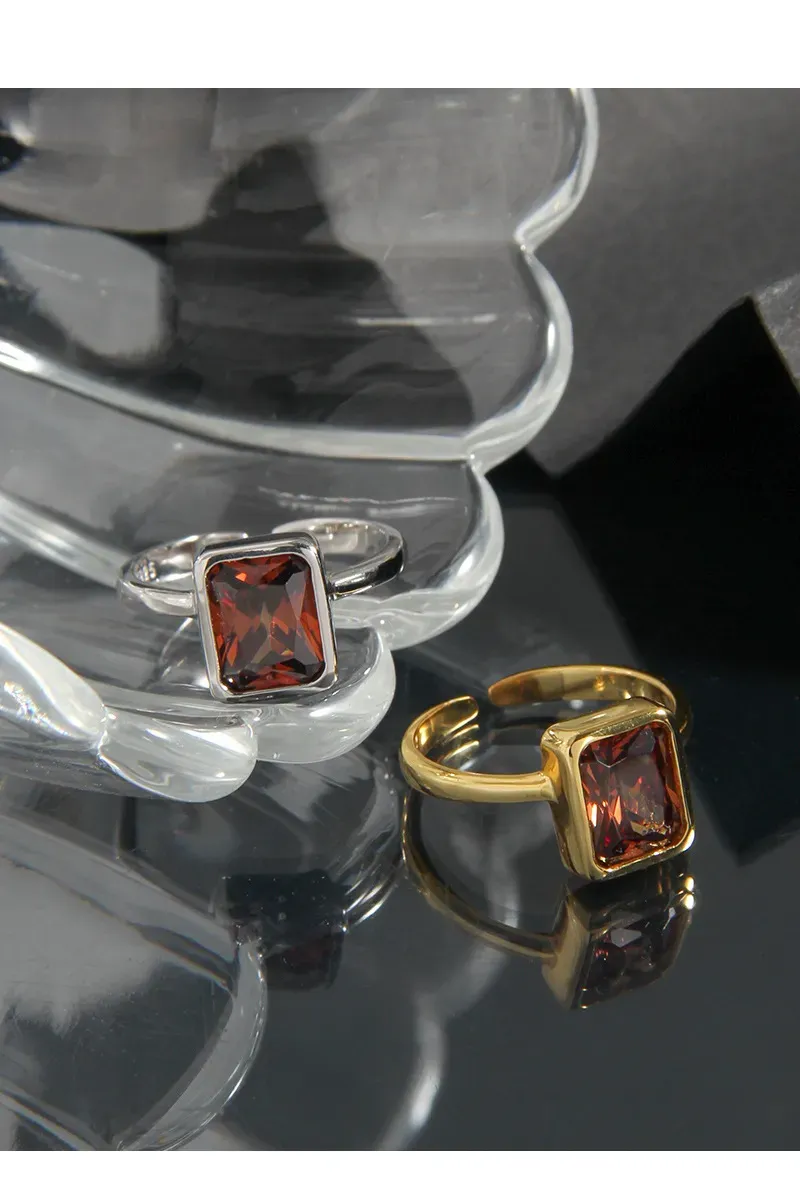 • Patterns & Textures: The meticulously faceted surface of the reddish-brown gemstone plays with light, revealing intricate internal patterns and a captivating brilliance that mirrors the complex beauty found in nature’s formations. The smooth, polished silver band offers a sleek texture, allowing the gemstone’s inherent beauty to take center stage, much like a precious discovery unearthed from the earth.