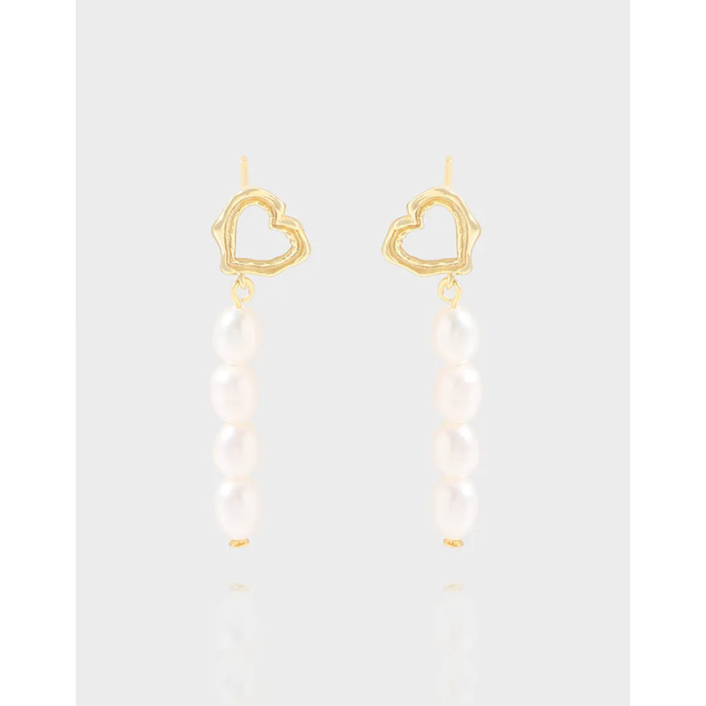Organic Gold Heart & Pearl Drop Earrings