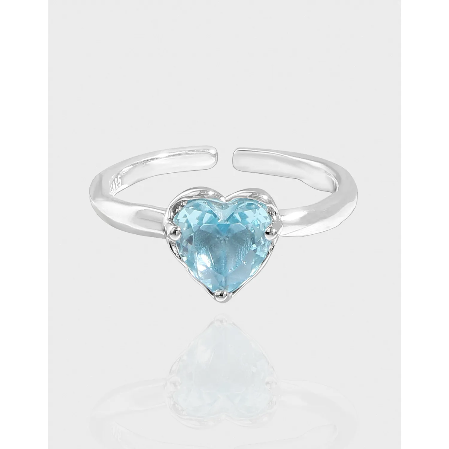 • Color: Brilliant sterling silver band and a captivating sky-blue heart-shaped gemstone.