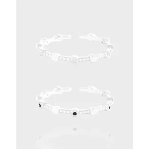 This radiant ring is crafted from lustrous silver-toned metal. Choose between the pristine brilliance of clear, faceted gemstones that shimmer like distant stars, or the sophisticated depth of black, faceted gemstones reminiscent of a moonless night. Both options offer a versatile and captivating allure.