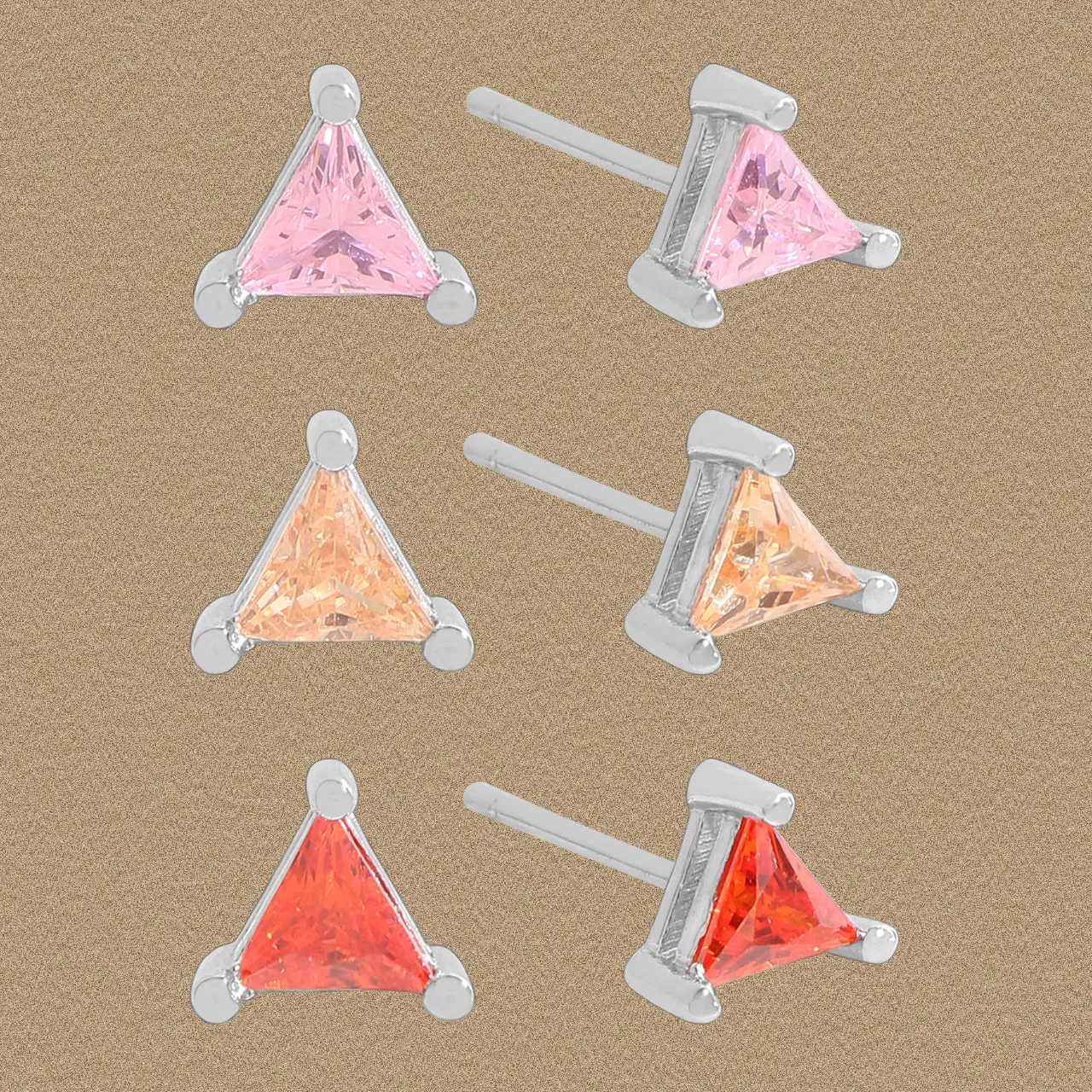 Vibrant Triangle Stud Earrings with Faceted Gems