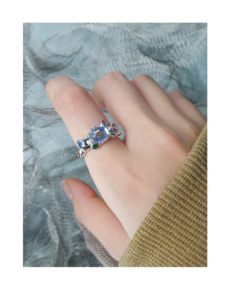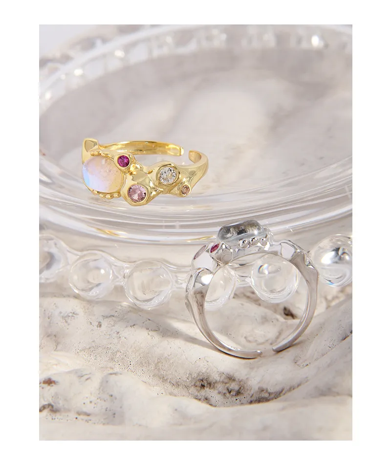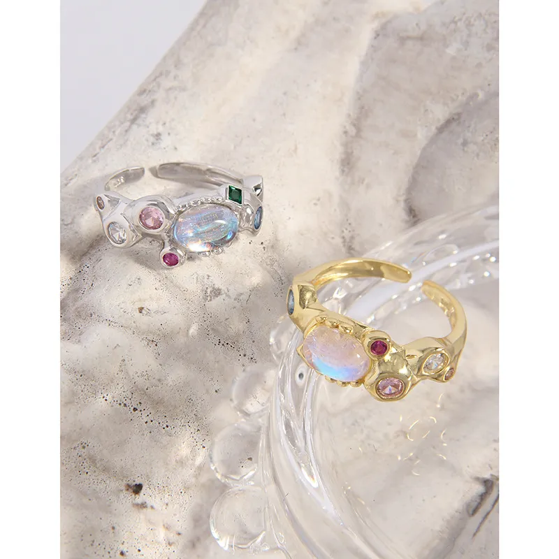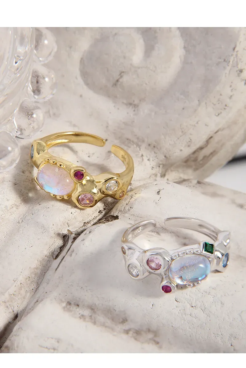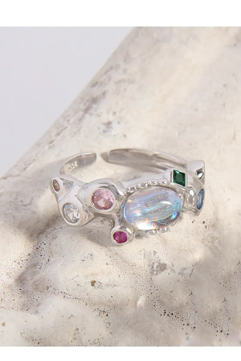 Celestial Dance Opal & Gemstone Adjustable Ring