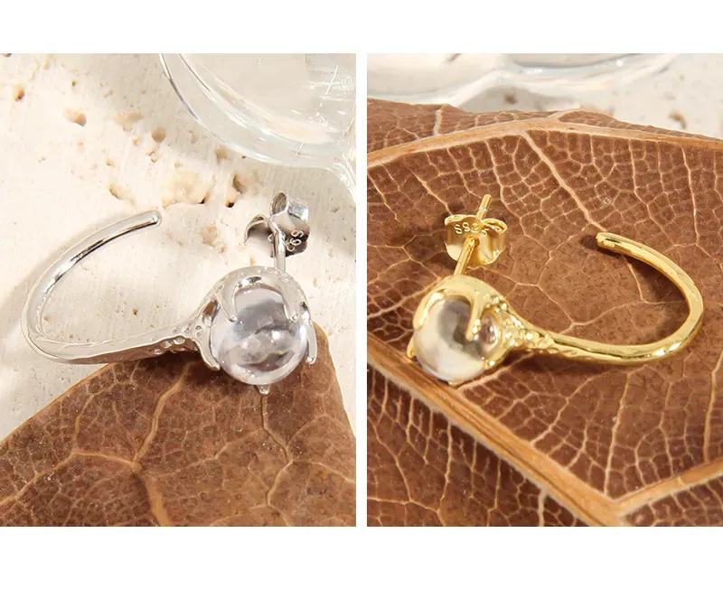 • Style: A modern take on the classic huggie hoop, their design features an intriguing organic form. The orb is held within a distinct, talon-like setting, reflecting nature’s raw elegance.