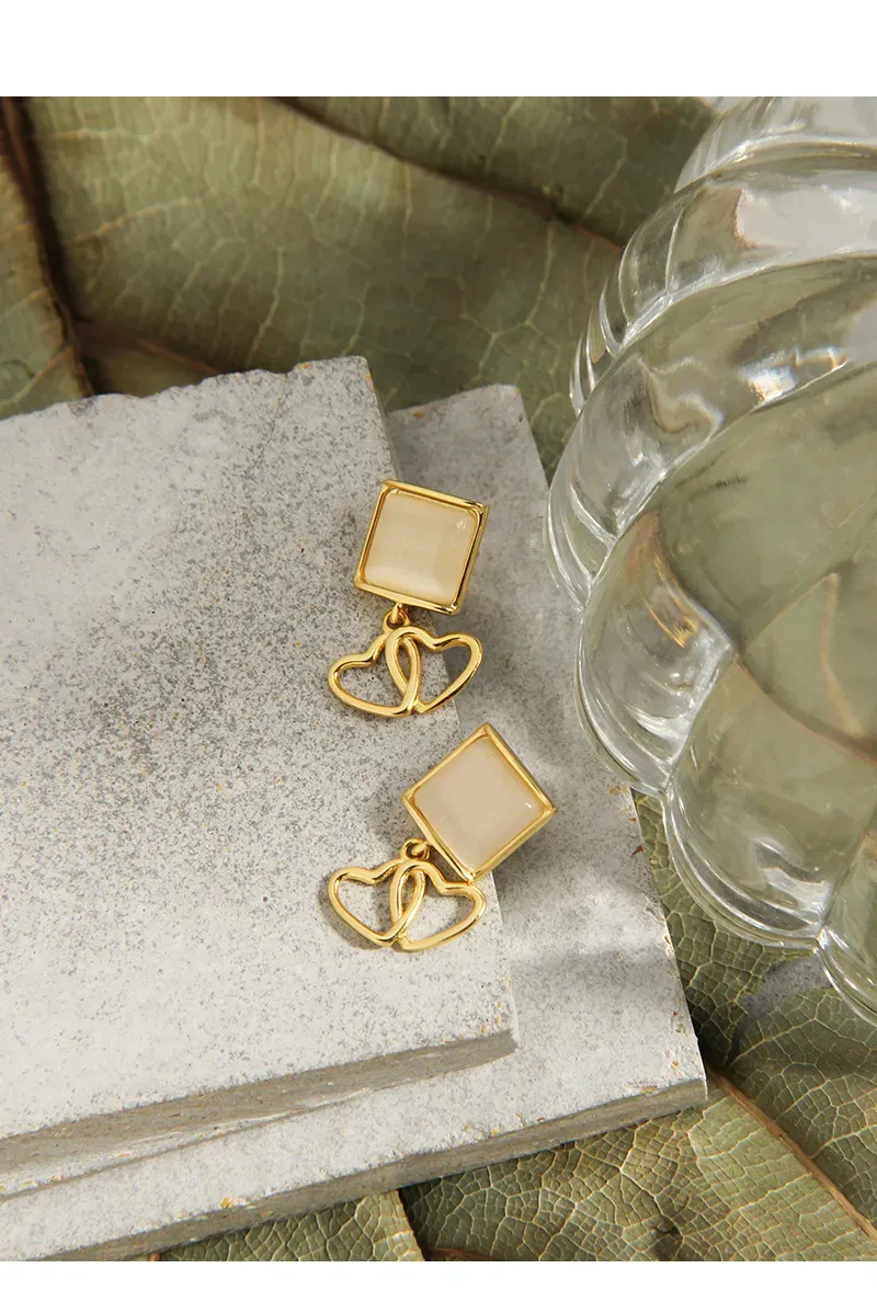 Malisse Golden Hearts & Opalite Drop Earrings