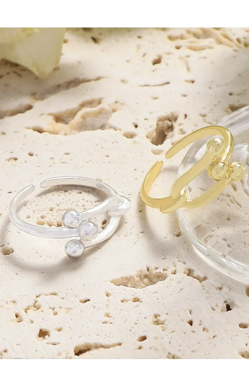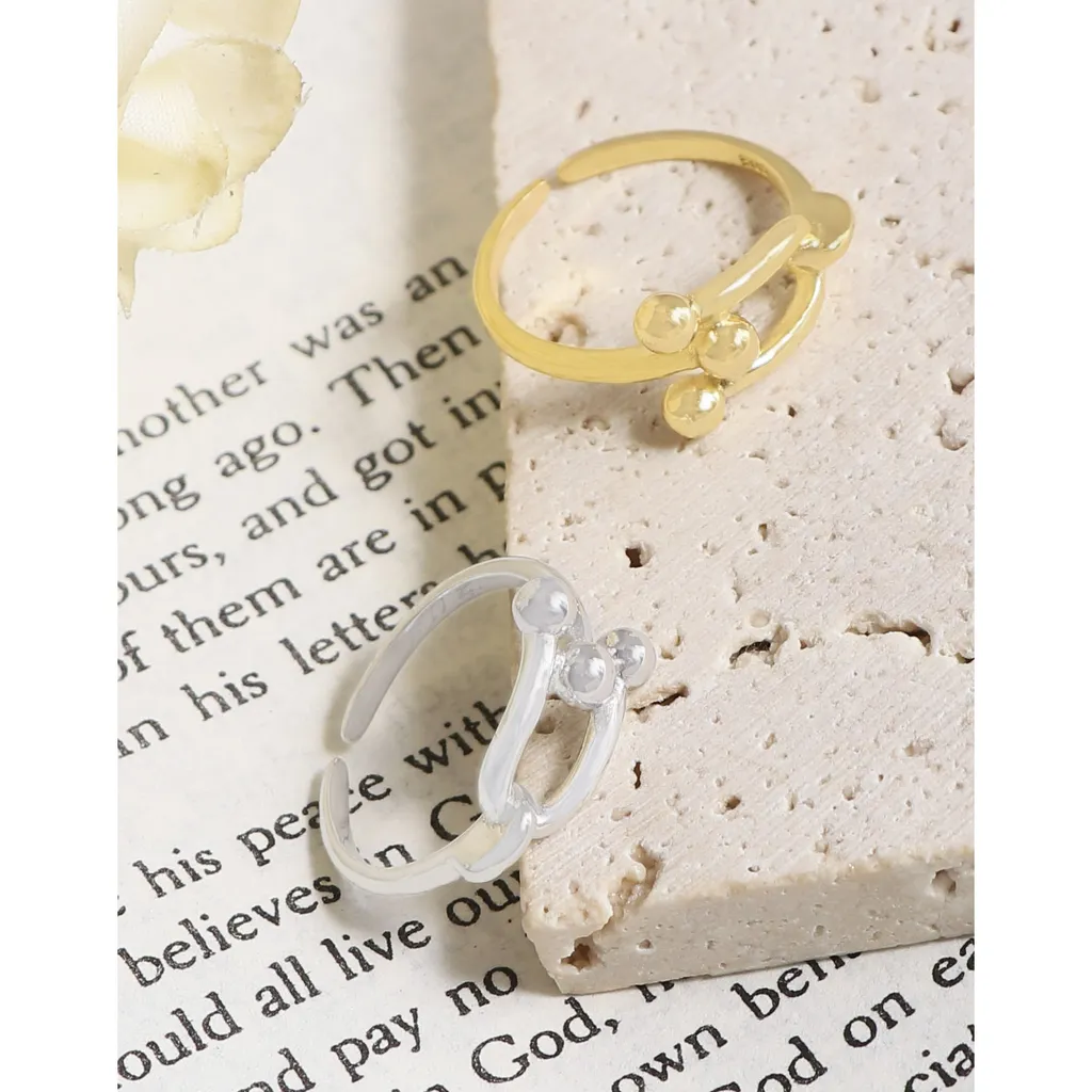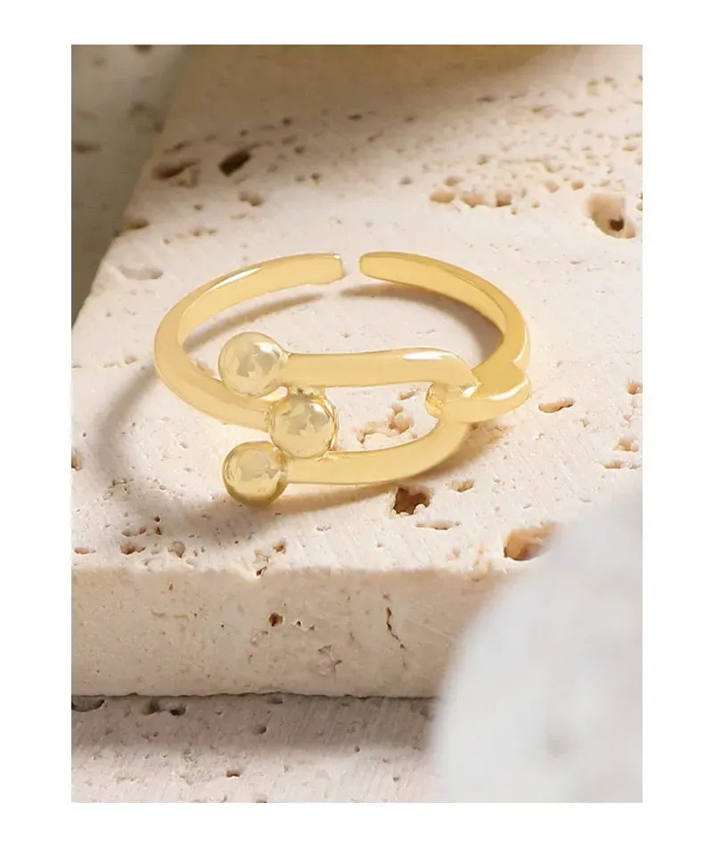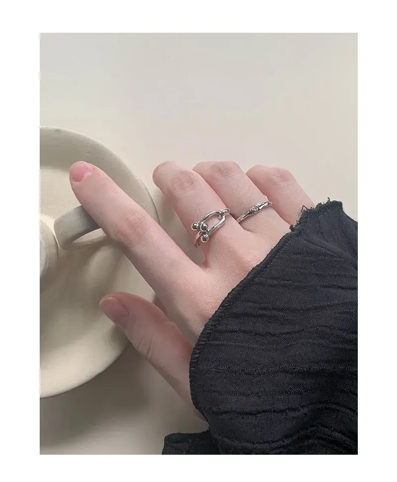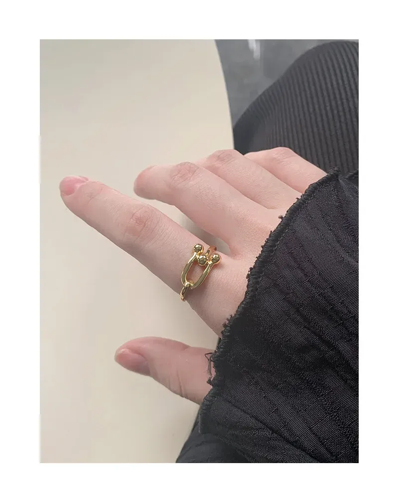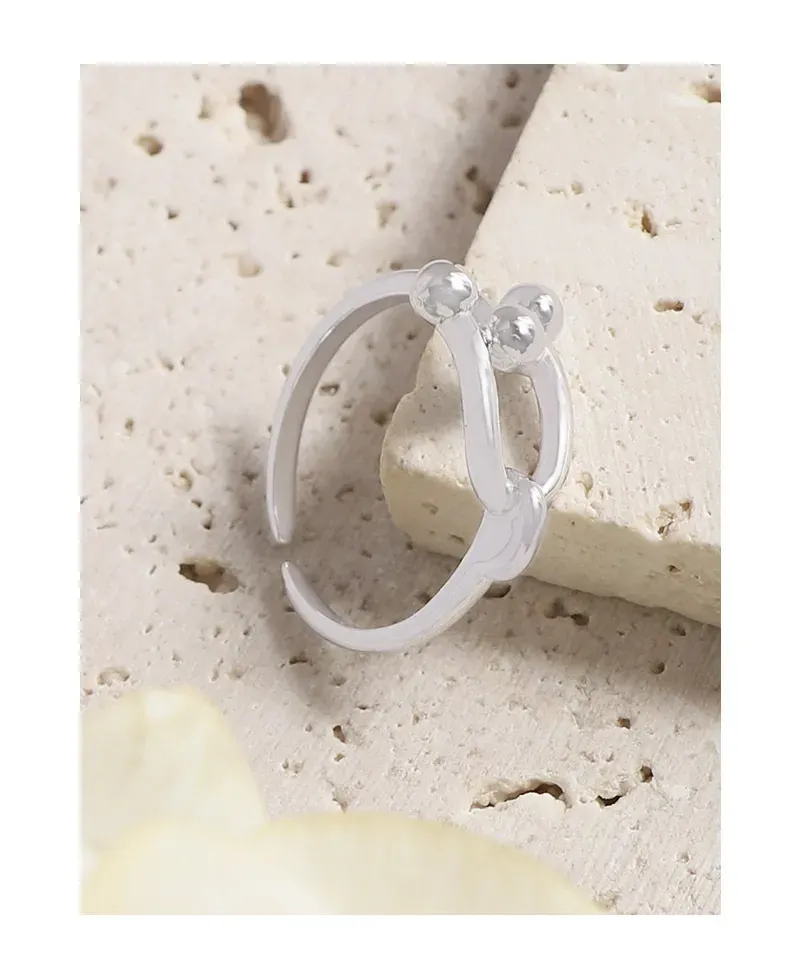 • Patterns & Textures: Crafted with a high-polish, smooth texture, the ring gleams beautifully. The distinctive pattern highlights two U-shaped links joined together, accentuated by four small, perfectly spherical beads that enhance its sculptural and unique aesthetic.