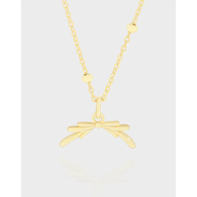 The centerpiece is a beautifully stylized, polished gold pendant, reminiscent of a delicate bow or intertwined leaves. Its smooth, reflective surface perfectly showcases the organic, flowing lines. Suspended from a slender, golden link chain, the Pamira Necklace features subtly spaced, smooth spherical beads that add a touch of refined texture and visual interest, echoing the unique patterns found in nature.