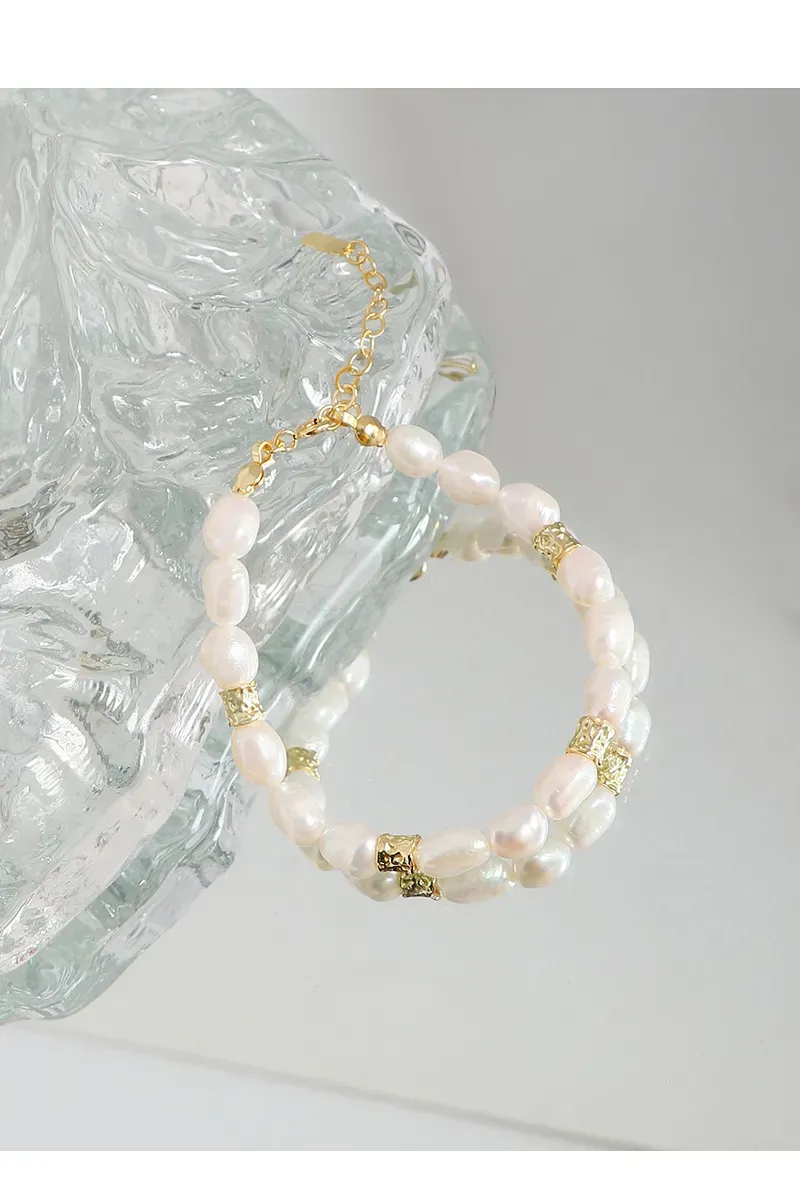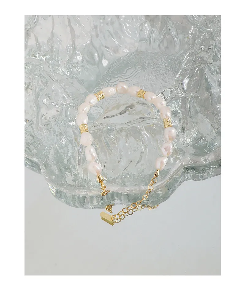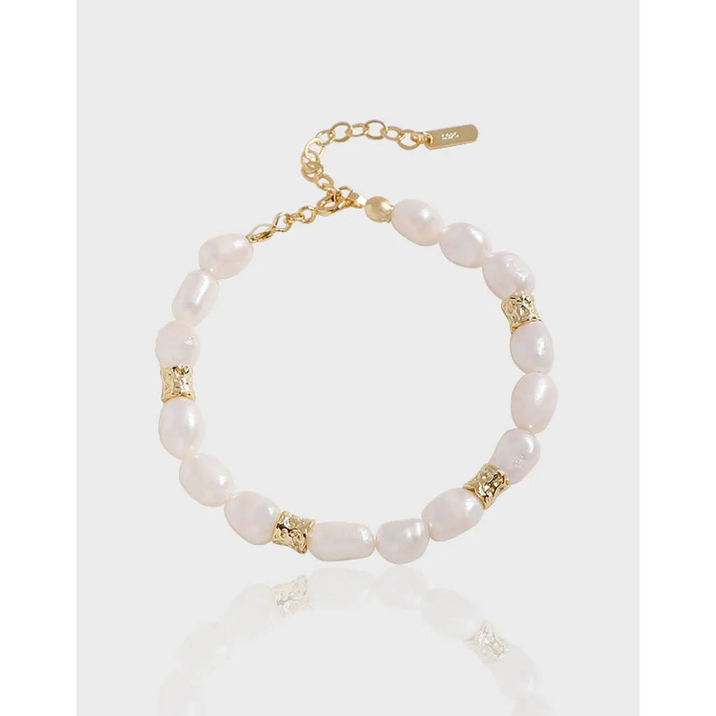 Malisse Freshwater Pearl & Gold Textured Bracelet