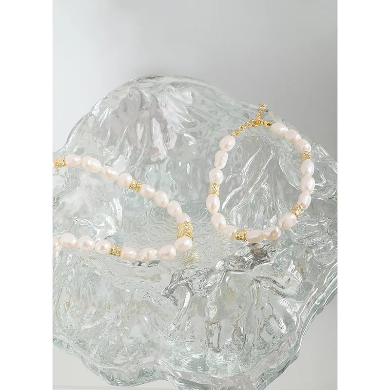 - Luminous freshwater pearls in soft, creamy white tones, offering a natural glow.
