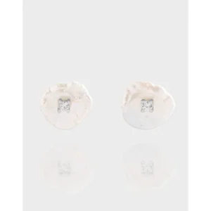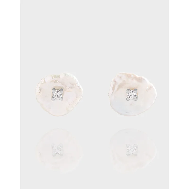 Crafted to embody the natural essence, these stud Petunmia Earrings feature lustrous baroque pearls, each distinct with its free-form, organic silhouette. At the heart of each pearl, a brilliant, faceted diamond-like stone is meticulously set within a sleek four-prong claw, adding a touch of celestial sparkle to these captivating jewels. This harmonious pairing tells a story of mystery and the timeless allure of nature’s artistry.
