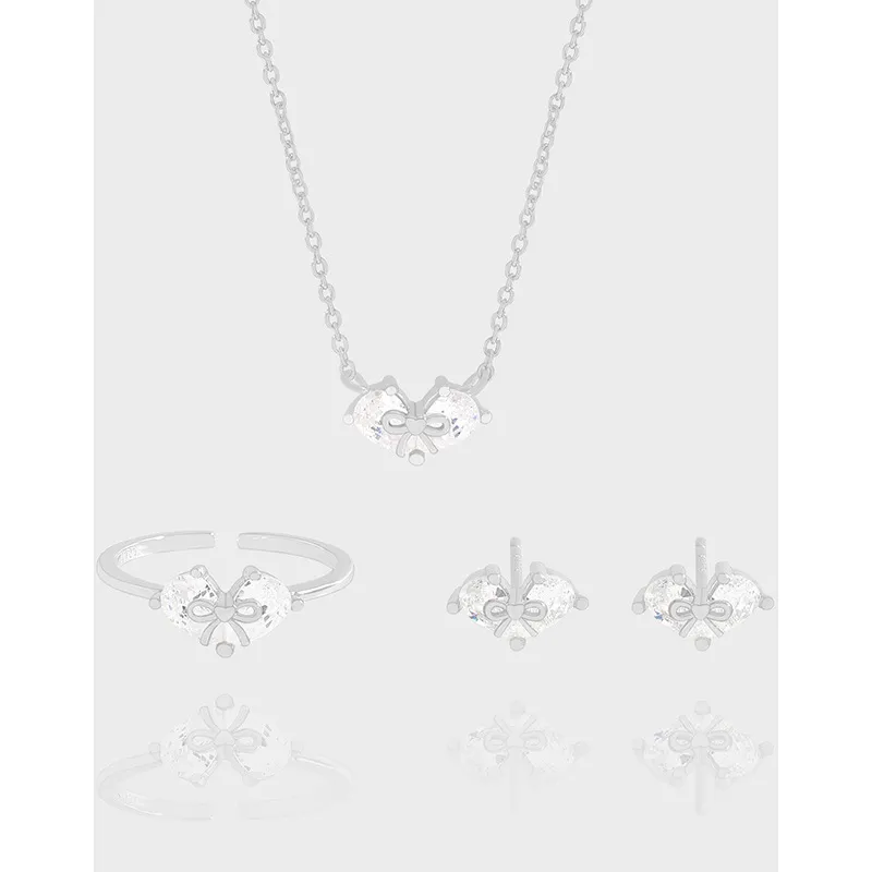 • **Patterns & Textures:** Each earring showcases two beautifully faceted clear crystals, set to shimmer like captured starlight. At their heart, a finely sculpted silver bow knot forms a central motif, complemented by a small, polished silver bead. The smooth, reflective metal provides a harmonious contrast to the sparkling texture of the stones.