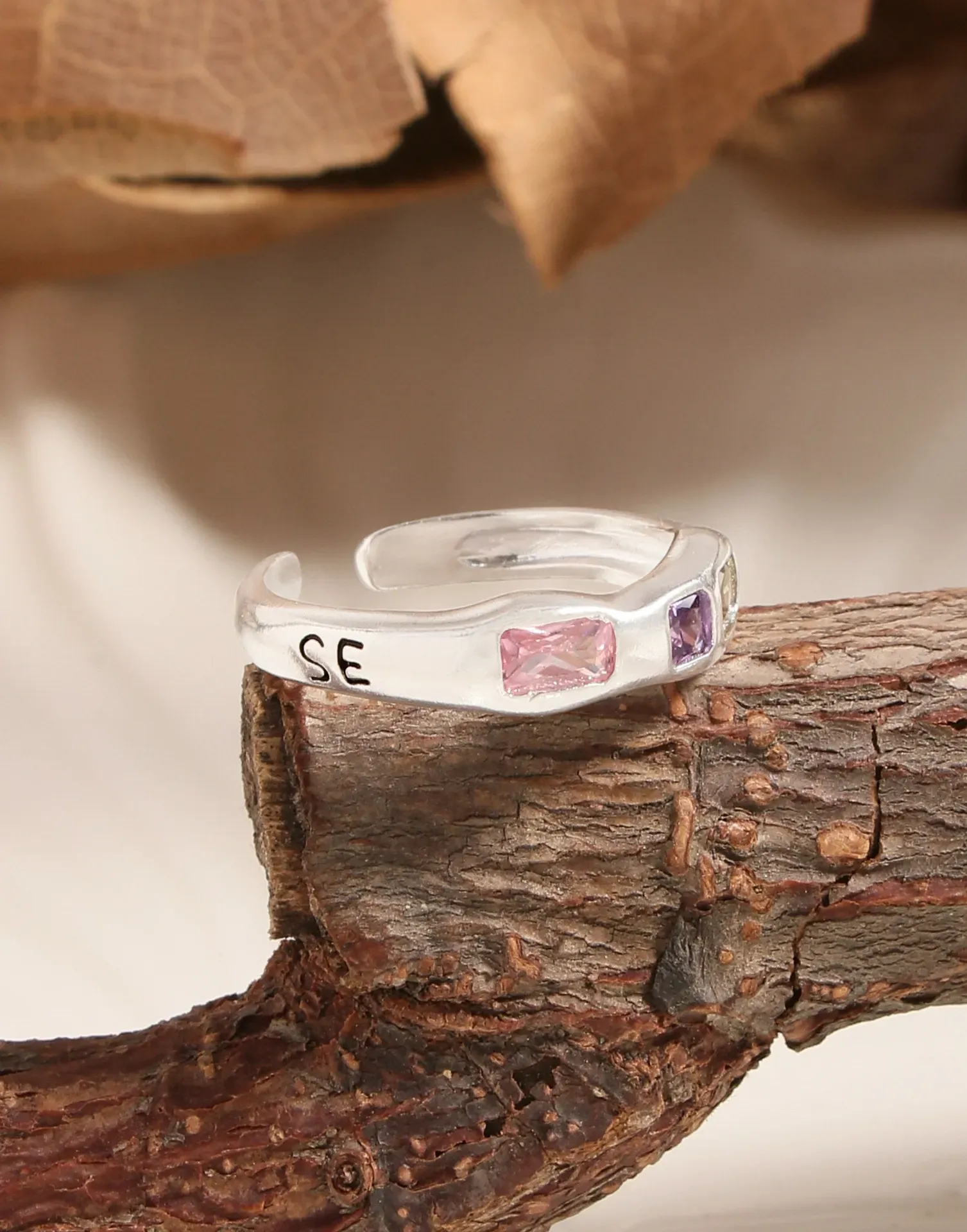 • Patterns & Textures: The sterling silver band boasts a smooth, yet subtly textured finish, celebrating the raw, imperfect beauty found in nature’s elements. On one side, subtle engraved markings add a unique, personalized touch, further enhancing the ring’s artisanal character.