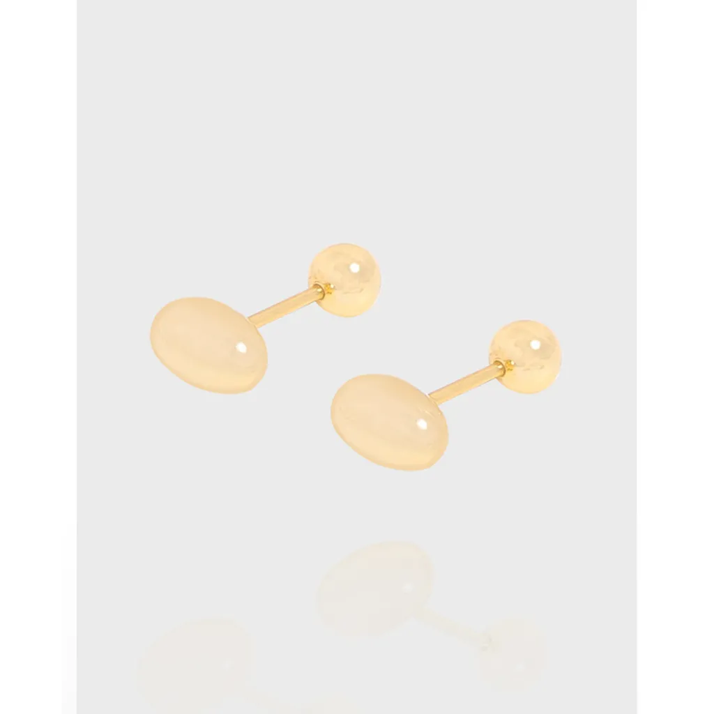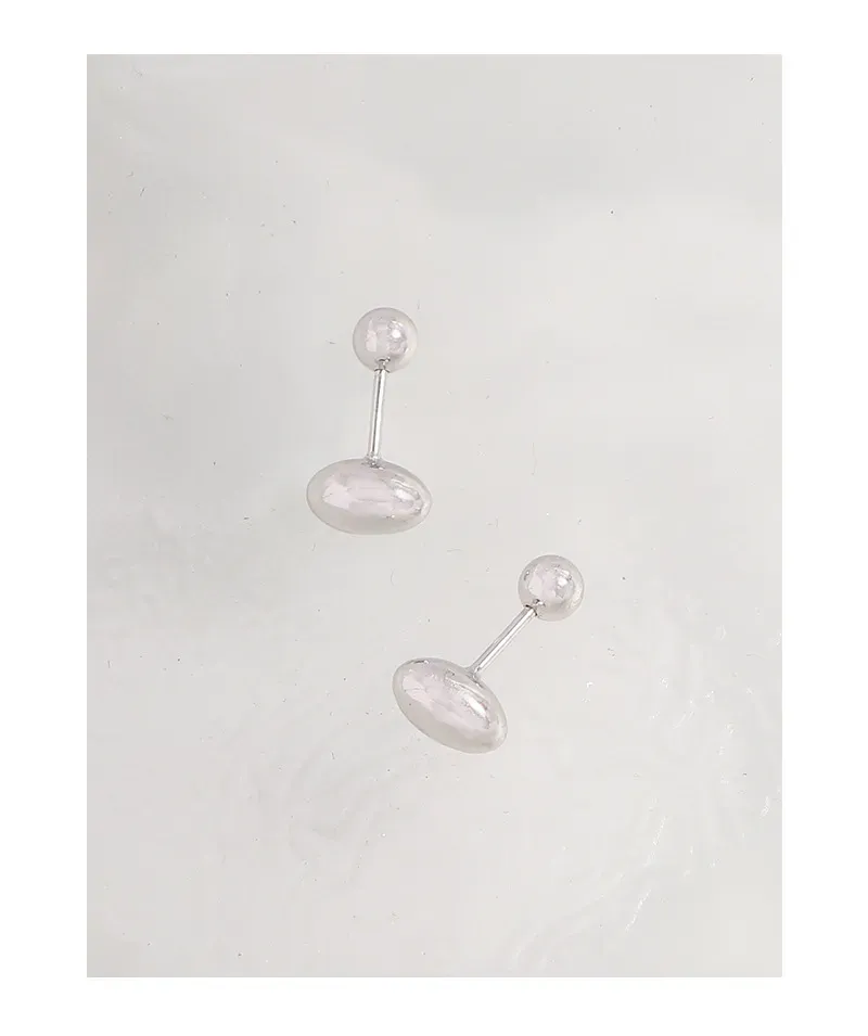 - Style: A modern and minimalist stud design, each earring showcases a unique bar-style post with a secure spherical back. The front presents a distinct, elongated oval form, offering a contemporary twist on classic elegance.