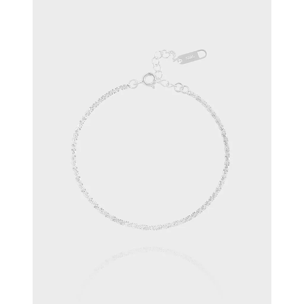 - Texture: The unique chain features a captivating ‘stardust’ texture, where countless tiny, irregular facets create a mesmerizing, sparkling pattern. This ‘imperfect beauty’ mimics the scattered light of distant stars and the shimmering surface of water, offering a subtle yet profound visual depth and an organic feel.