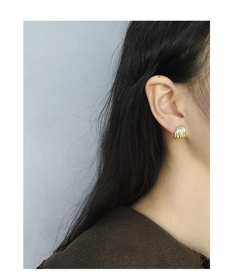 - Style: Modern organic studs, featuring a unique curved, sculptural form that gracefully hugs the earlobe.