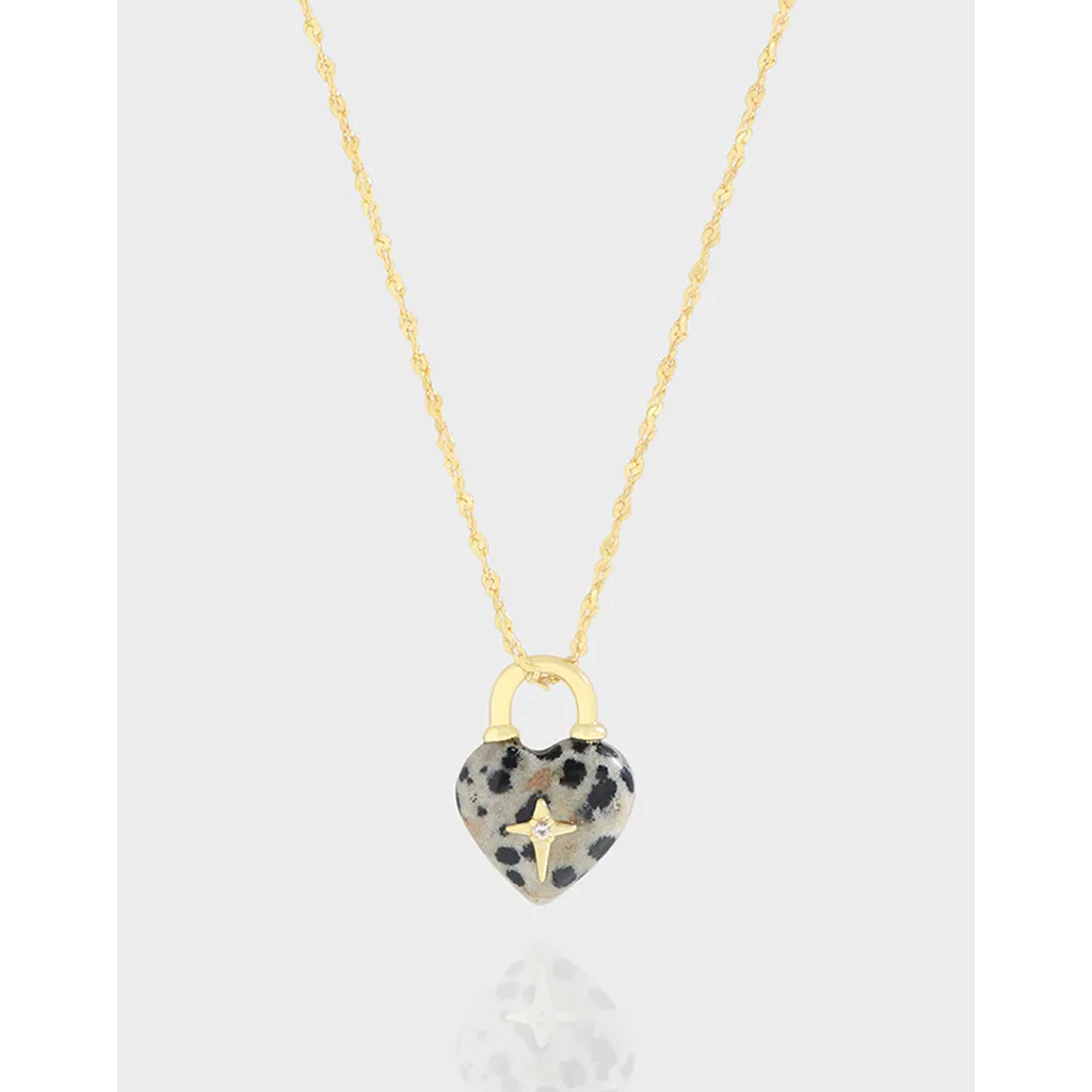 Dalmatian Jasper Heart Lock Necklace with Star