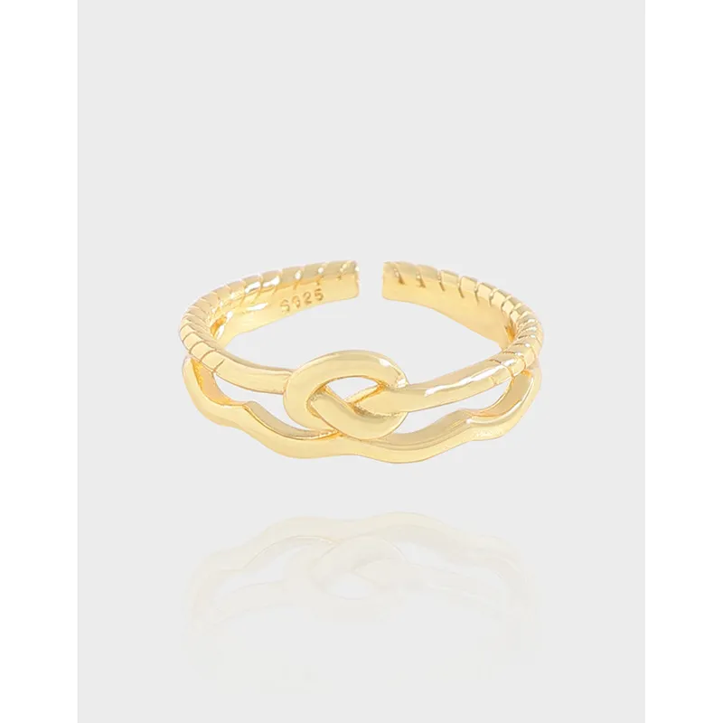 Elegant Gold Knot Ring with Textured Wavy Bands