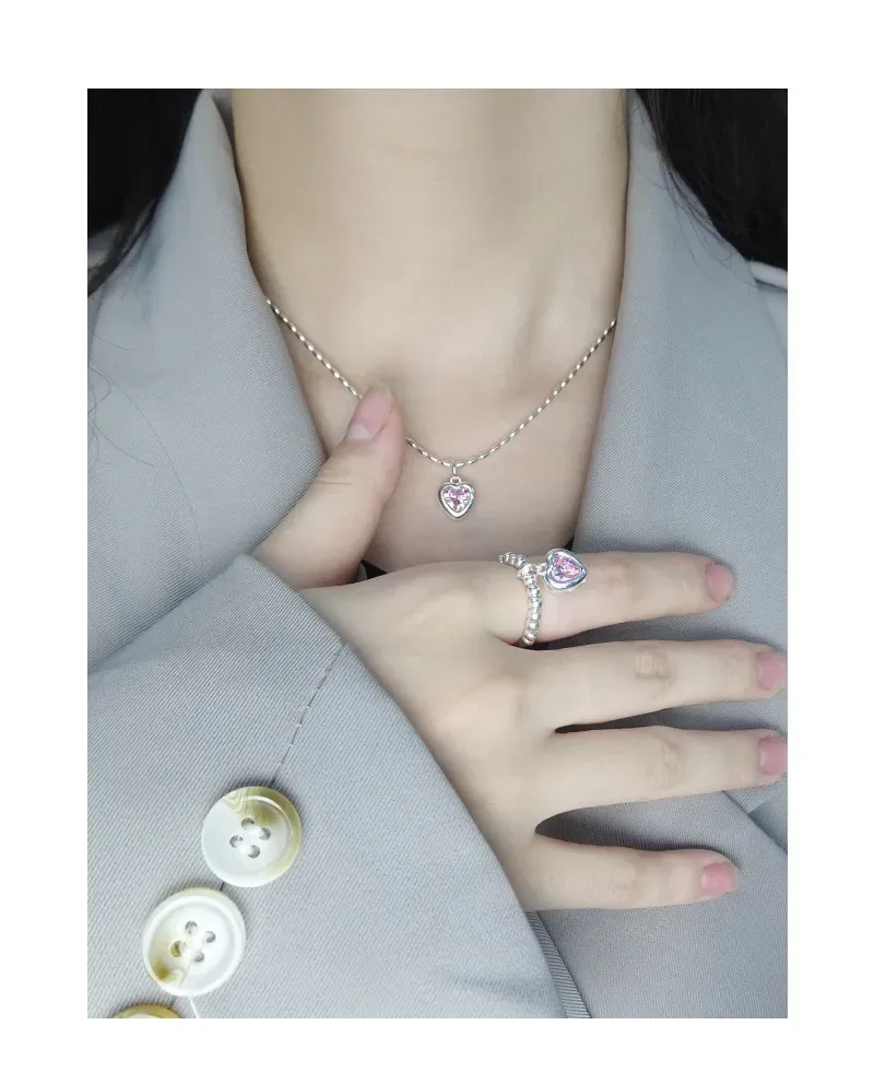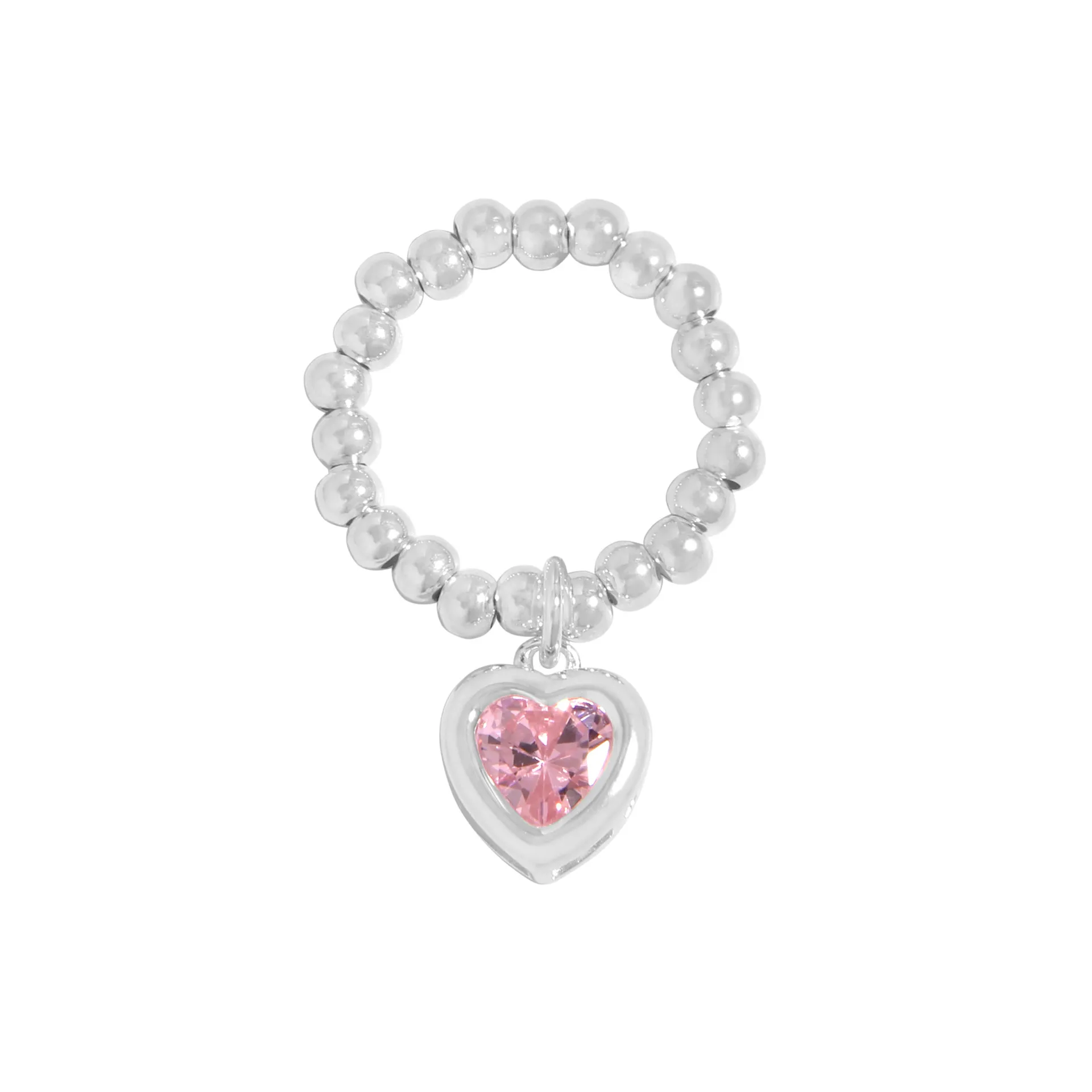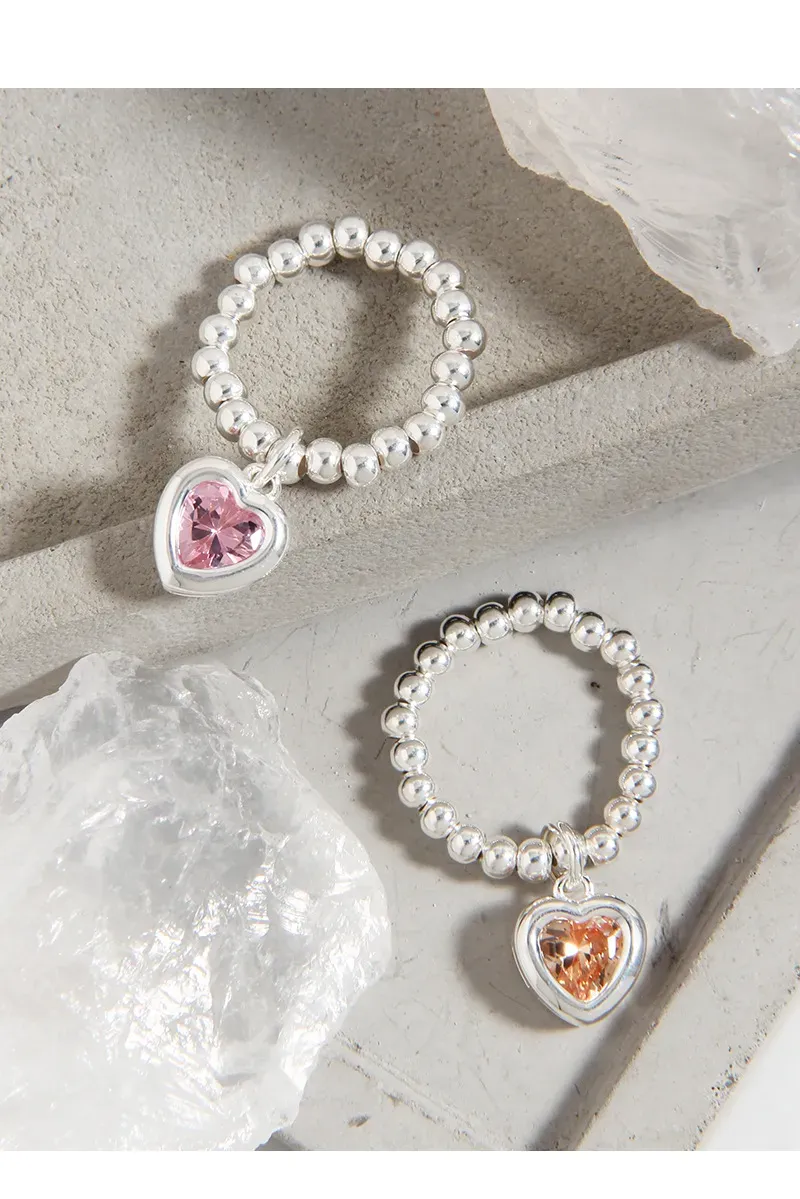 - Patterns & Textures: The ring band is crafted from numerous small, uniformly polished spherical silver beads, creating a smooth, tactile texture that adapts gracefully. Each central heart charm features a brilliantly faceted gemstone nestled within a sleek, polished silver bezel, offering a captivating shimmer and depth inspired by the natural elements.