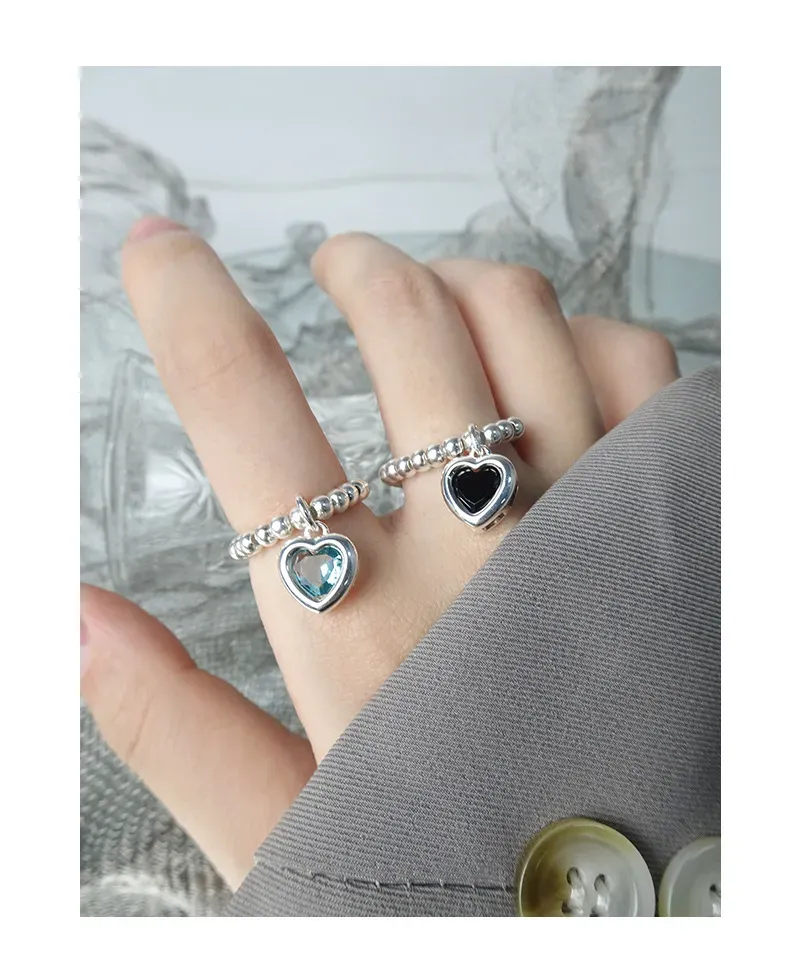 - Color: The flexible ring band and heart bezel shine in polished silver. The captivating heart gemstone comes in a spectrum of celestial hues: a warm peach/amber, a soft rose pink, a sophisticated deep black, a mesmerizing midnight blue, or a serene aqua teal.