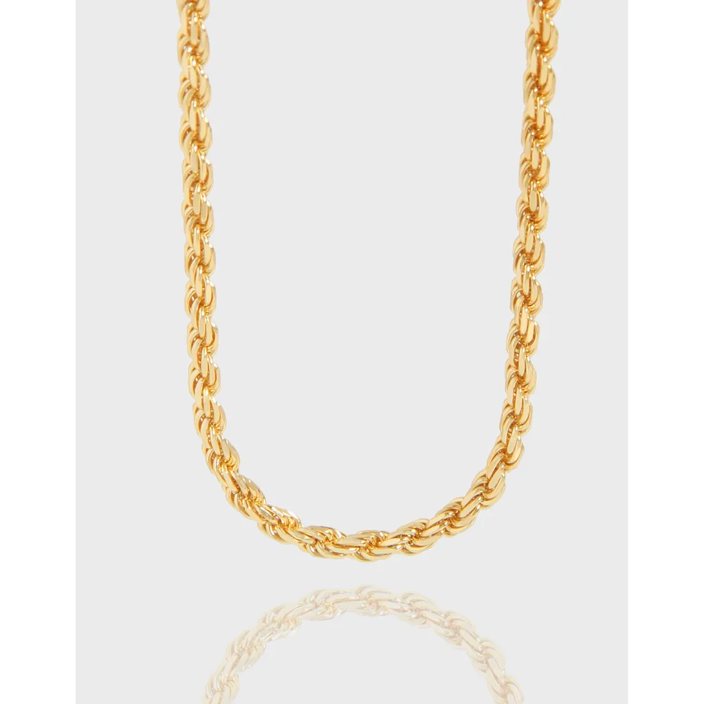 Discover the radiant elegance of this Malisse Golden Rope Chain Necklace, a piece that beautifully balances classic style with intricate detail. Its design reflects a natural, fluid beauty, perfect for everyday wear or special occasions.