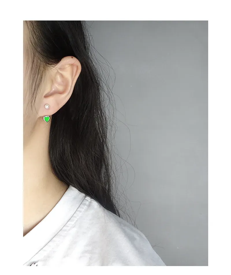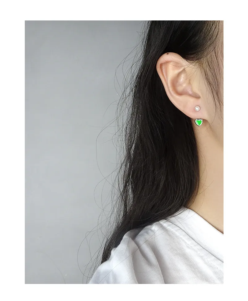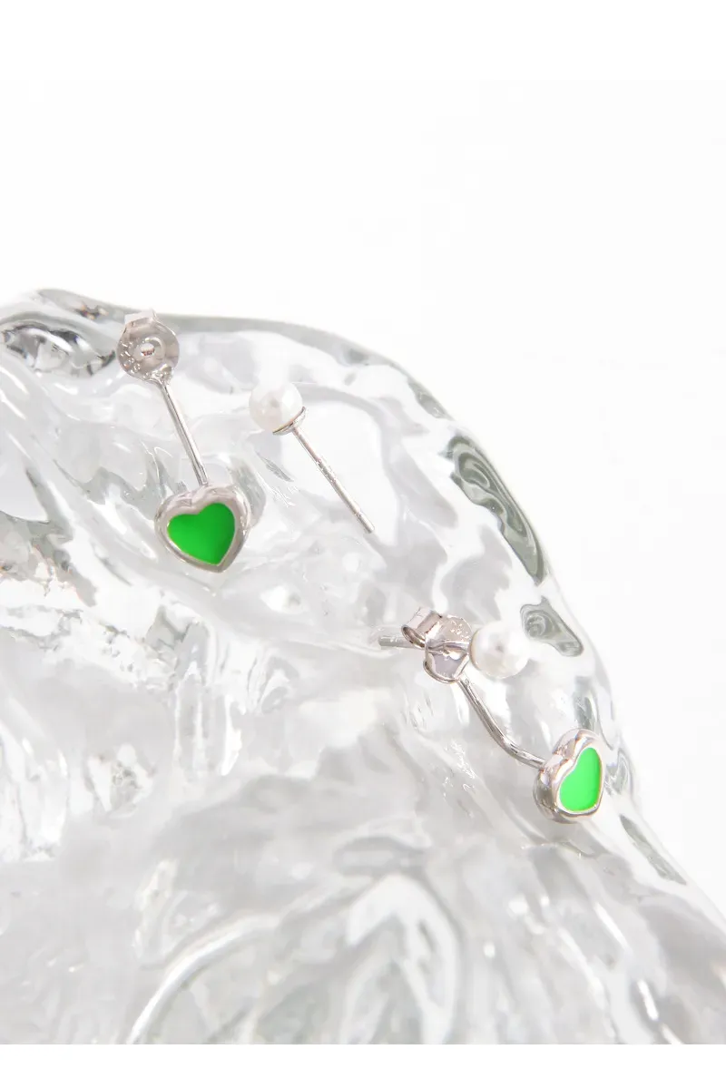 - Style: These modern ear jackets feature a captivating two-part design. A classic pearl stud adorns the earlobe, while a graceful heart-shaped element dangles elegantly below, creating a fluid and sophisticated silhouette.