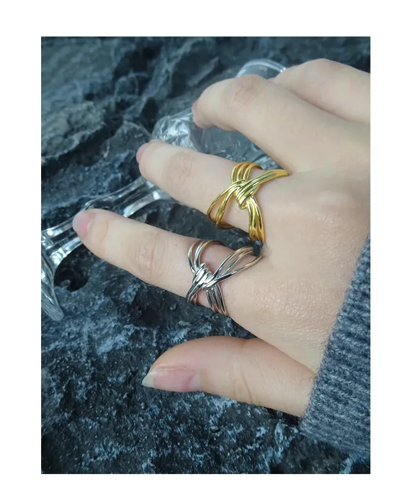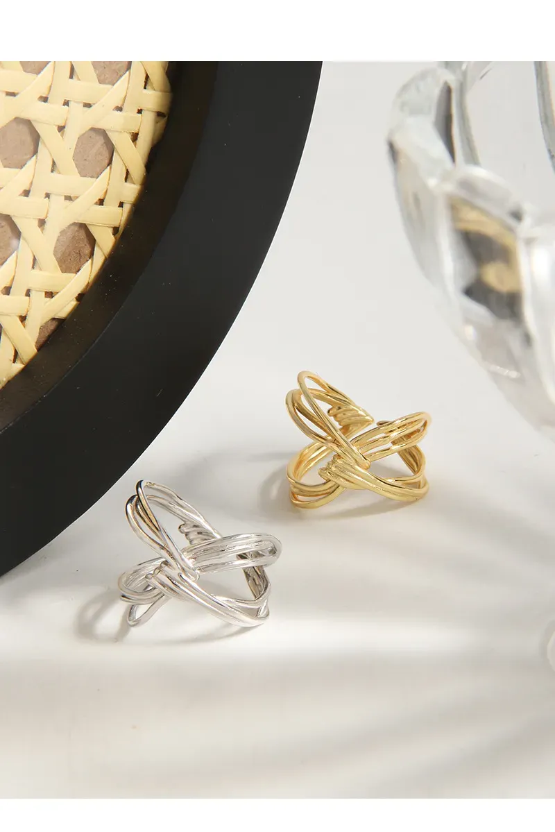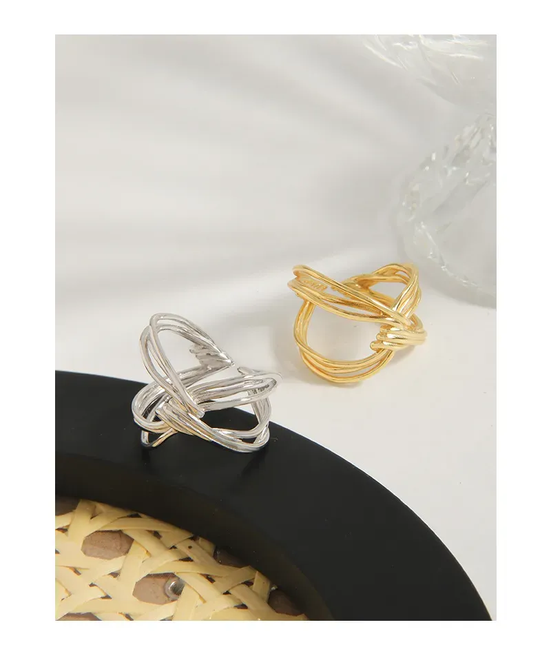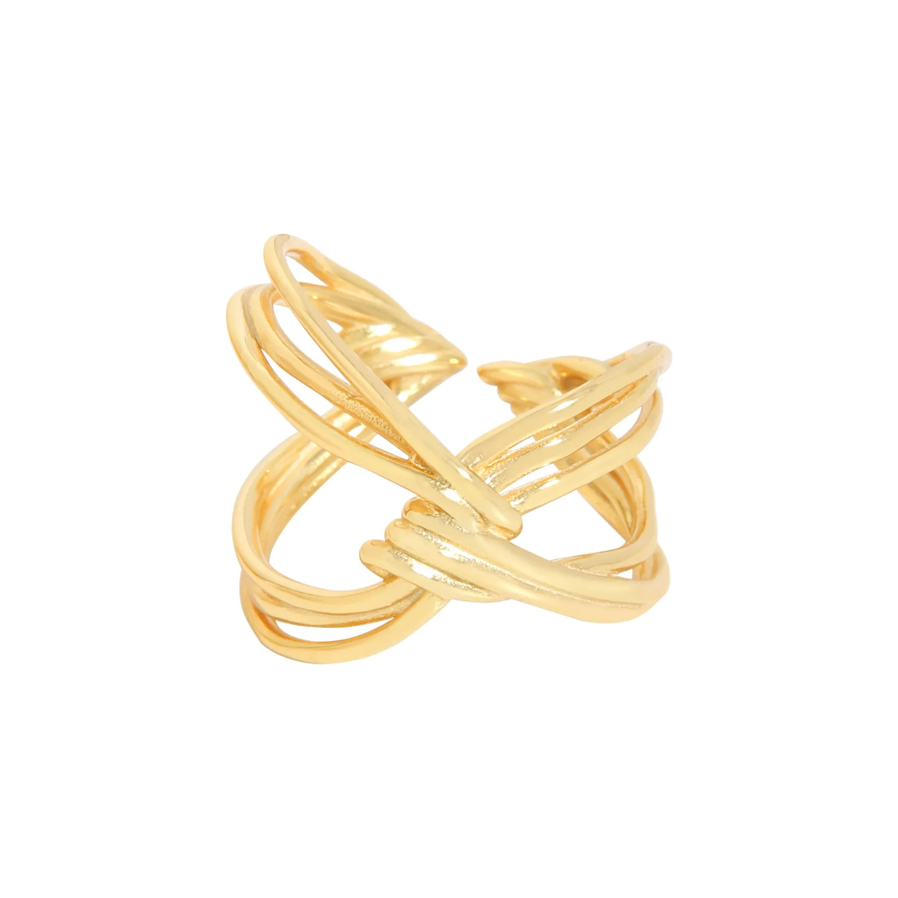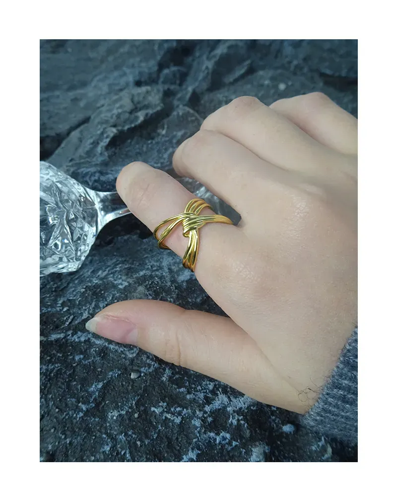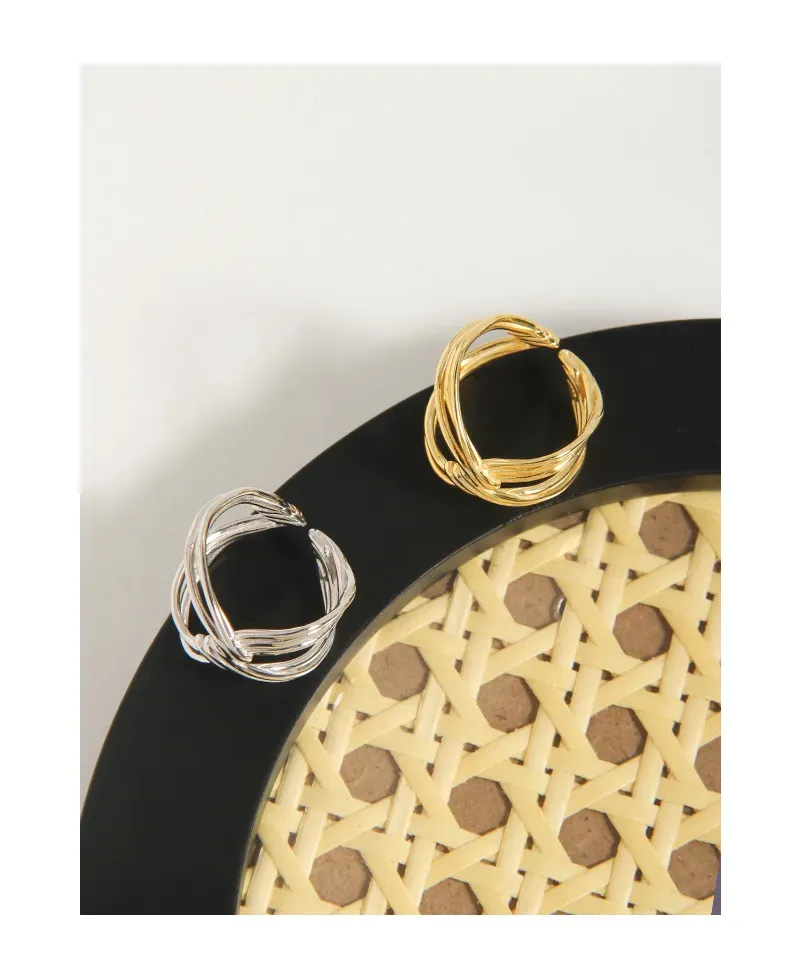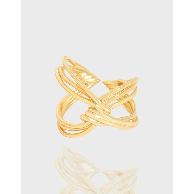 - Style: A sophisticated statement Raelisara Ring featuring an open-ended silhouette with multiple, gracefully intertwined bands. Its unique criss-cross or knot-like pattern reflects fluid shapes and the dynamic beauty found in nature.