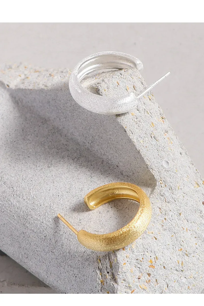 • Patterns or Textures: Each earring is distinguished by a captivating sand-blasted finish, creating a fine, granular texture with a subtle matte shimmer. This raw, imperfect beauty mirrors the unique patterns found in nature and the ethereal glow of the northern lights.