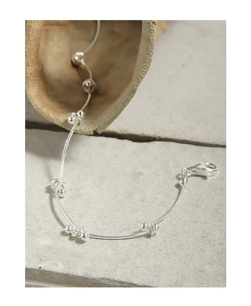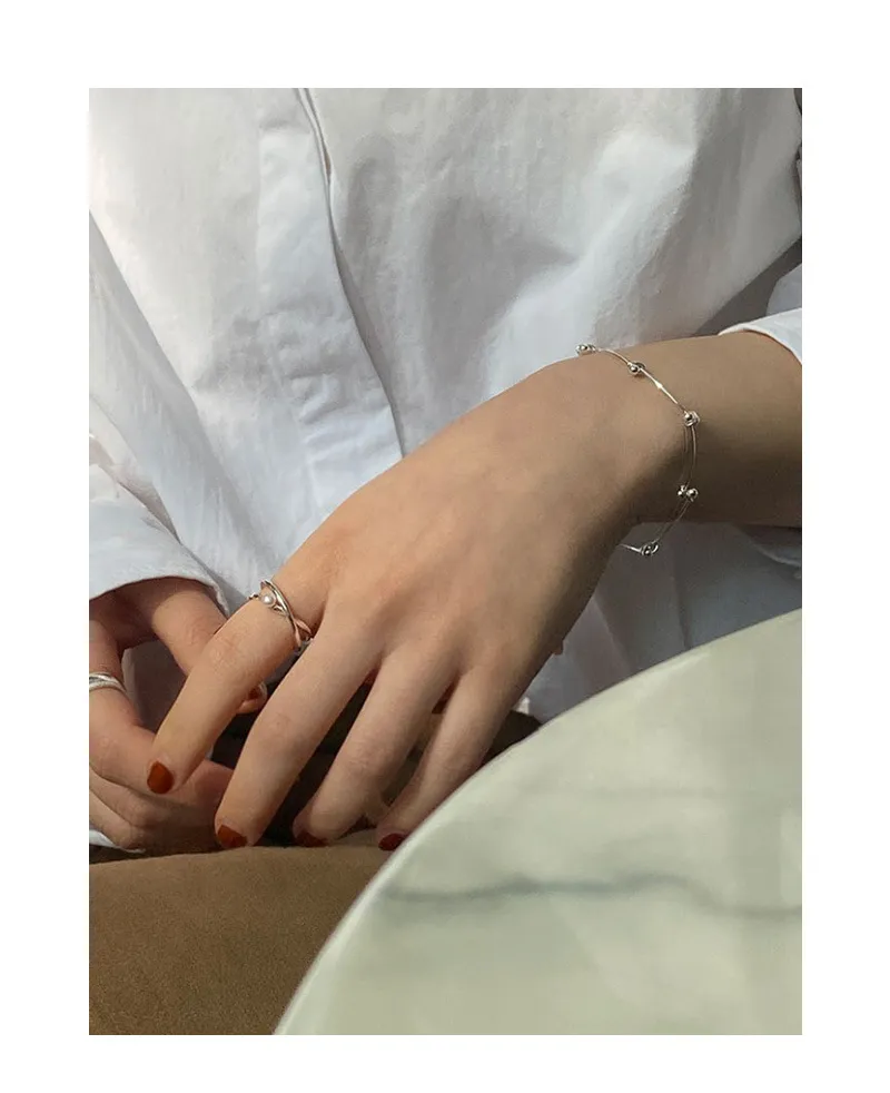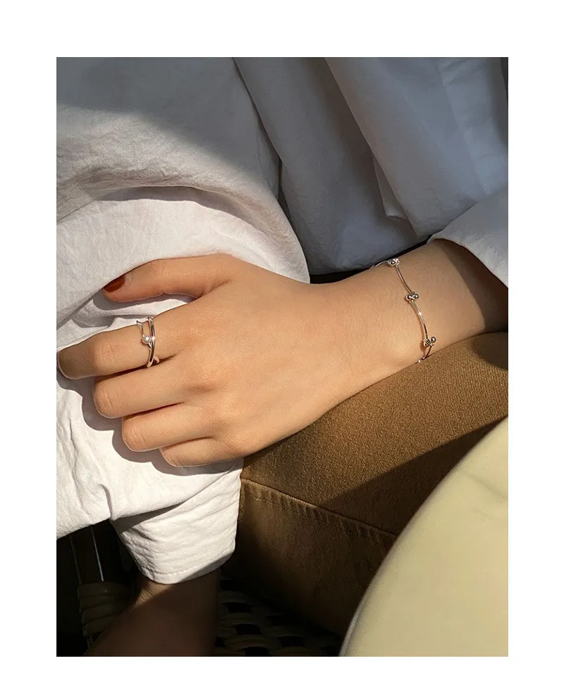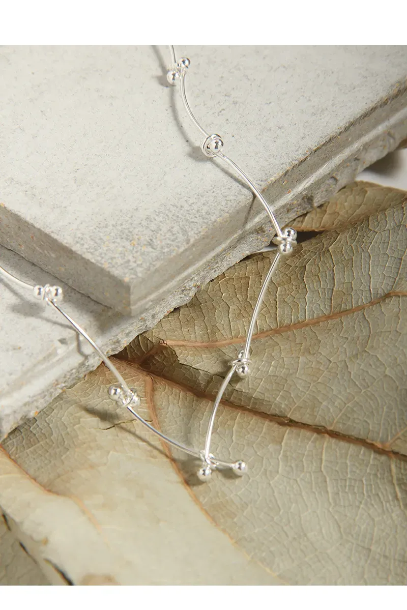 • Patterns & Textures: The bracelet boasts a smooth, highly polished surface throughout, ensuring a lustrous finish that catches the light beautifully. Along its slender form, evenly spaced clusters of two small, perfectly spherical beads create a unique, knot-like pattern, adding a refined texture and visual interest without intricate detailing.