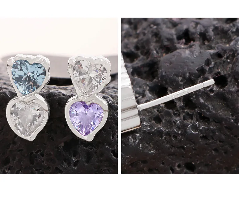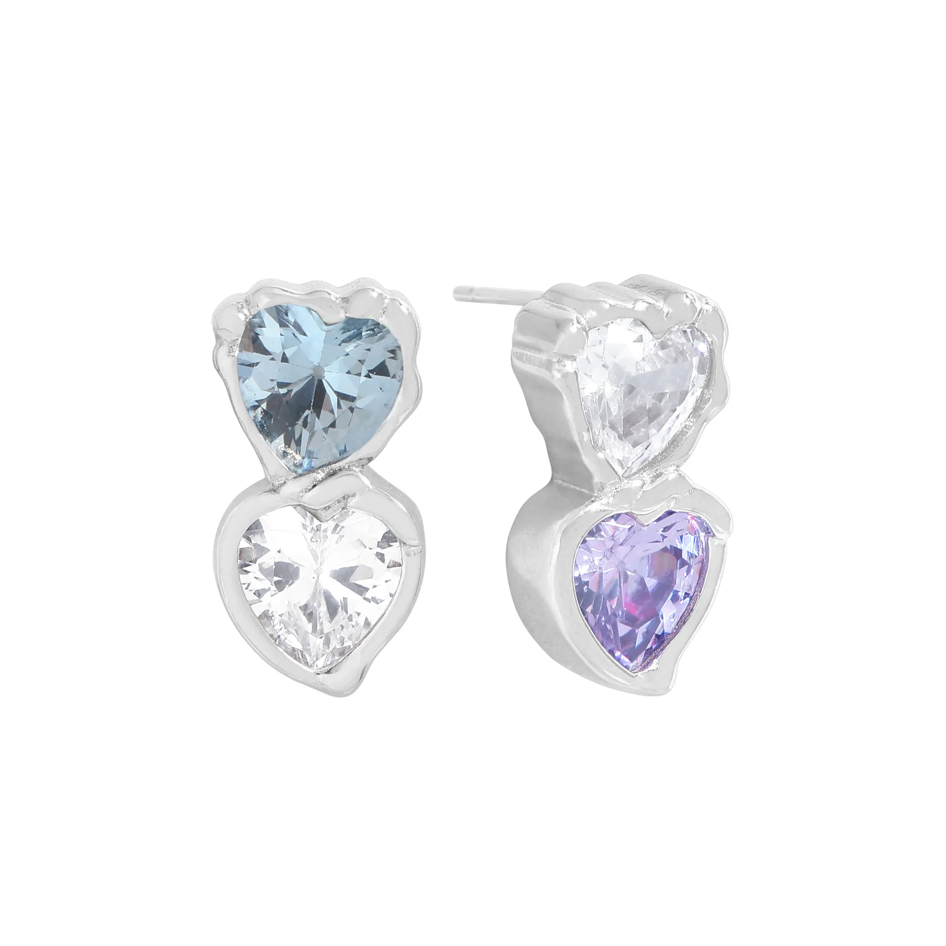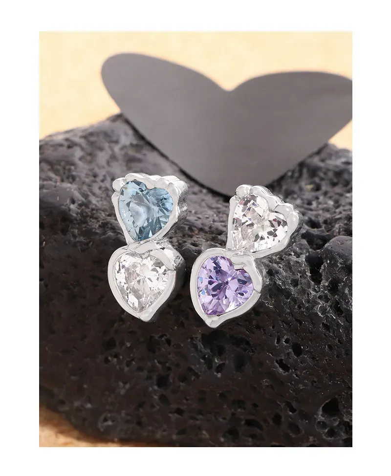 - Color: Adorned with a harmonious blend of serene light blue, brilliant clear/white, and mystic lavender heart-shaped gemstones. The settings are crafted from radiant silver-toned metal, providing a timeless backdrop for the vibrant hues.