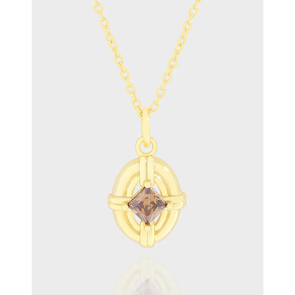 - Style: Designed with a delicate chain and an elegantly framed oval pendant, this piece exudes a modern yet timeless allure. The harmonious blend of smooth gold curves and the striking square-cut gemstone creates a sophisticated and balanced aesthetic, perfect for adding a touch of understated glamour.