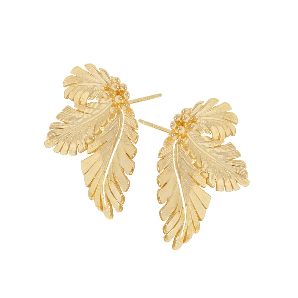 Embrace the enchanting spirit of nature with these exquisite Malisse Golden Leaf & Berry Stud Earrings, a tribute to the earth’s timeless artistry.