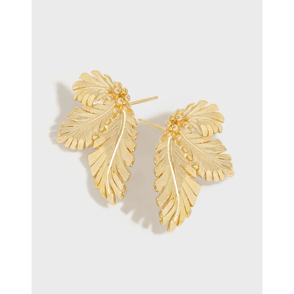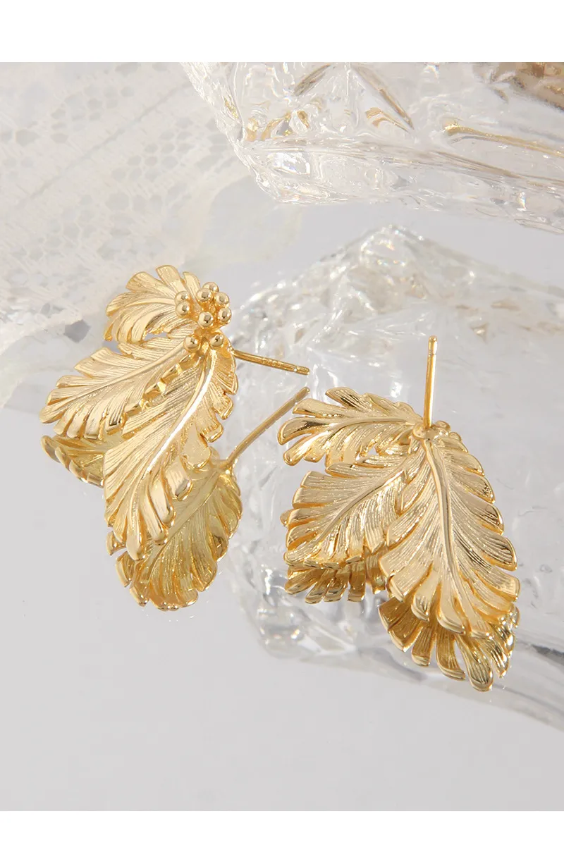 - Color: Crafted in a radiant, lustrous gold, these earrings capture the warm glow of a sunlit forest, reflecting light with captivating brilliance.