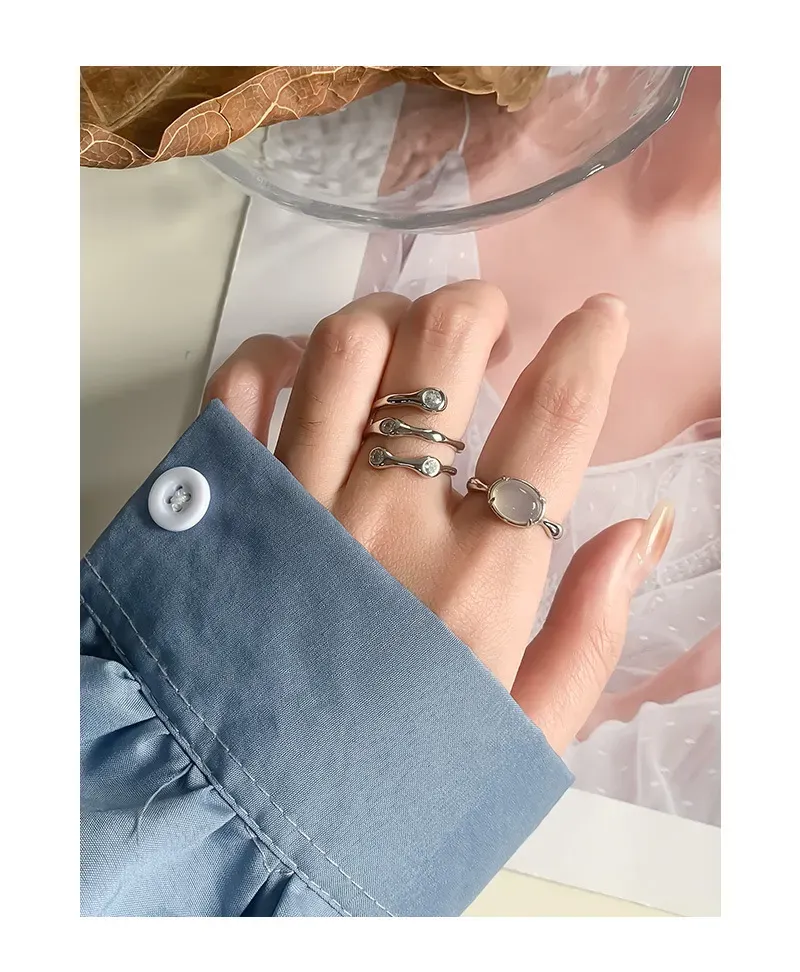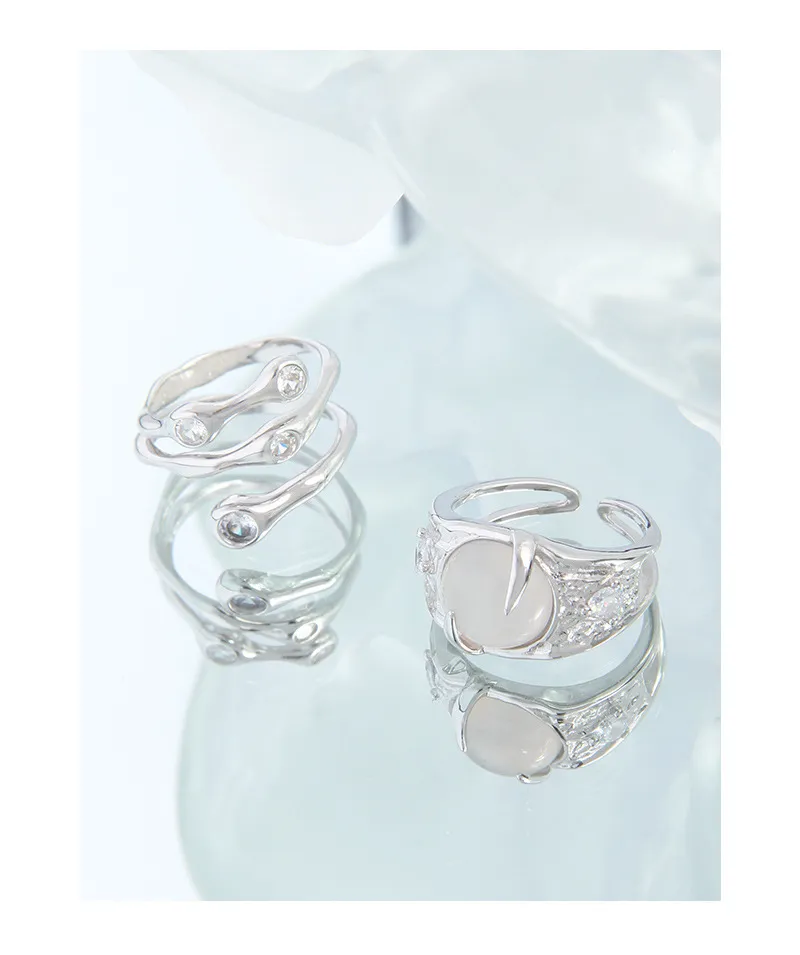 This exquisite silver-toned ring embodies fluid elegance with its unique, coiling design. Crafted with a lustrous metallic finish, its organic and wavy band mimics the graceful movement of natural forms.