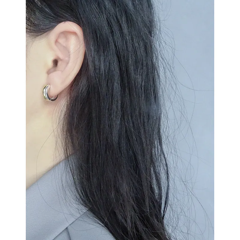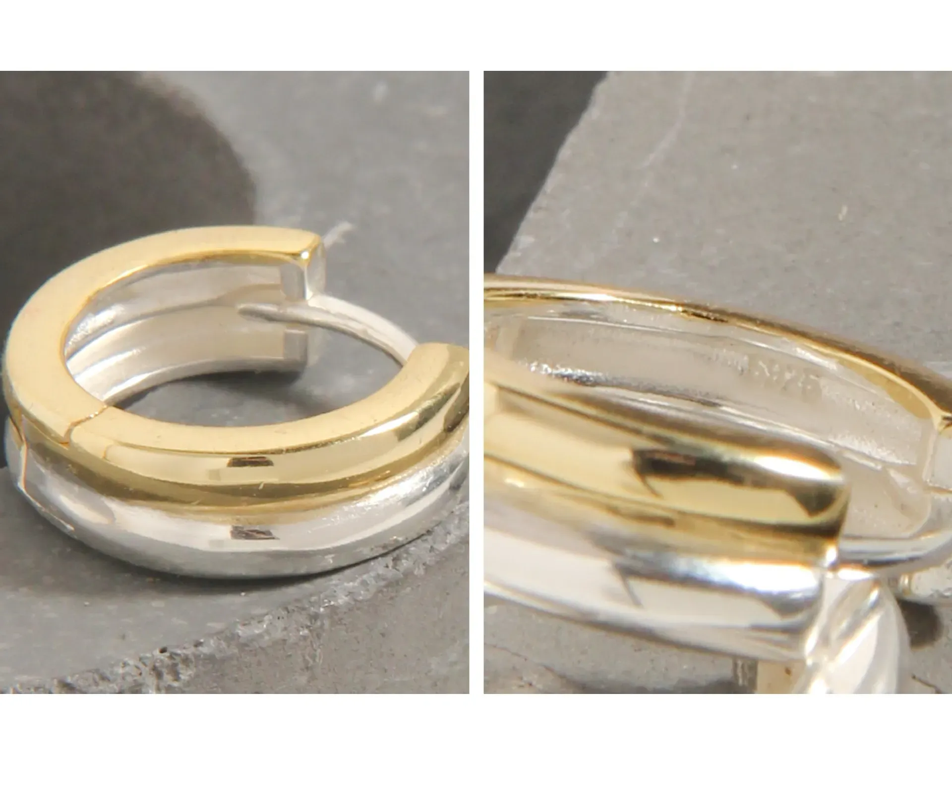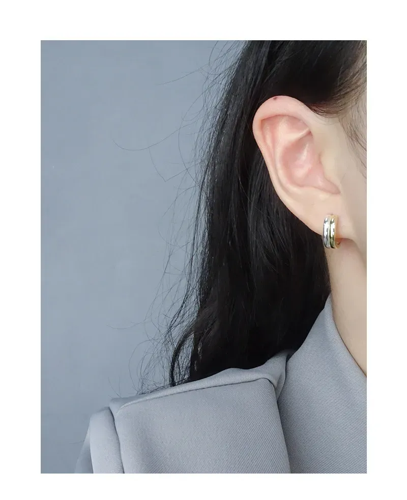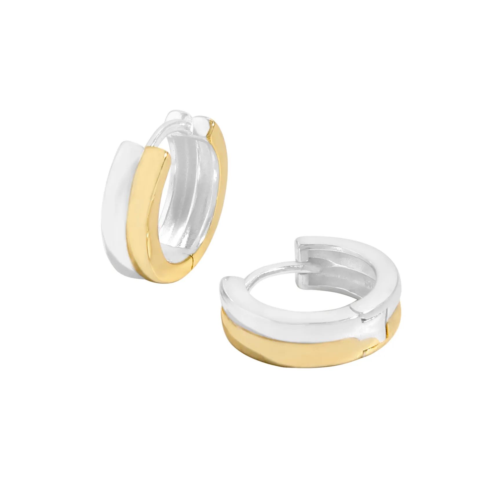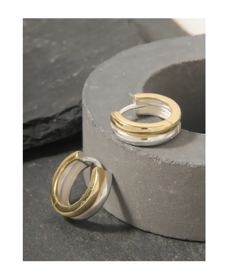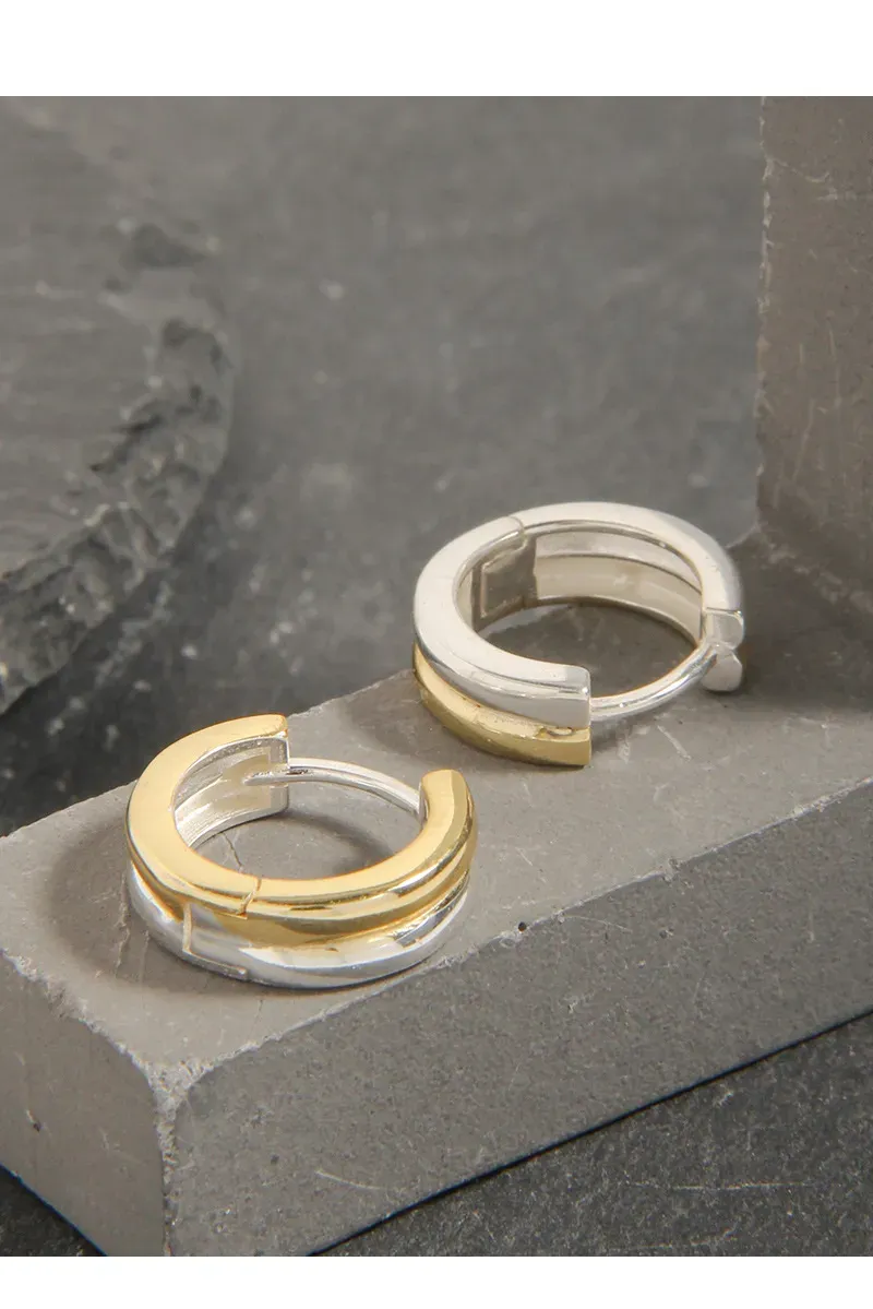 Discover the captivating allure of our Two-Tone Hoop Earrings, a perfect blend of modern elegance and timeless design. Each earring showcases a sleek, polished silver-toned metal gracefully contrasted with a rich gold-toned section, creating a sophisticated bi-color effect that effortlessly complements any ensemble. Crafted with a smooth, highly polished finish, these hoop earrings beautifully reflect light, adding a subtle gleam to your look. Their clean lines and understated design highlight a contemporary, sculptural form, making them a versatile and stylish addition to your jewelry collection.