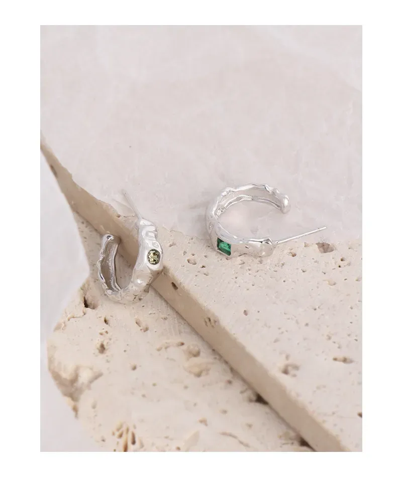 - Style: Contemporary huggie hoop design, perfect for everyday wear or adding a touch of organic elegance to any ensemble. The stud backing ensures comfortable and secure wear.