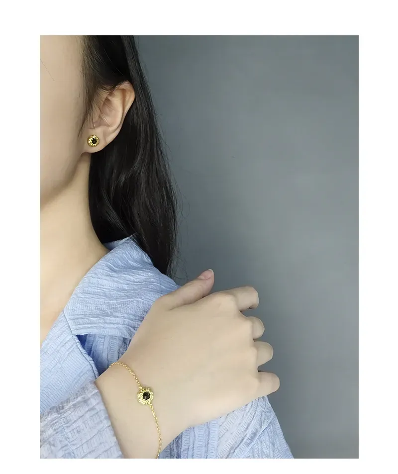 Color: The Scarlet Bracelet shines in a radiant gold tone, beautifully complementing a deep, rich black gemstone that serves as its captivating centerpiece.
