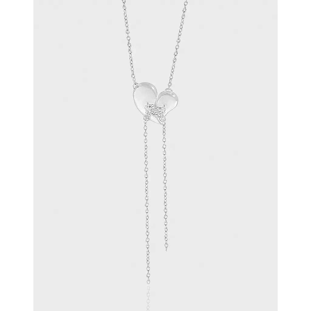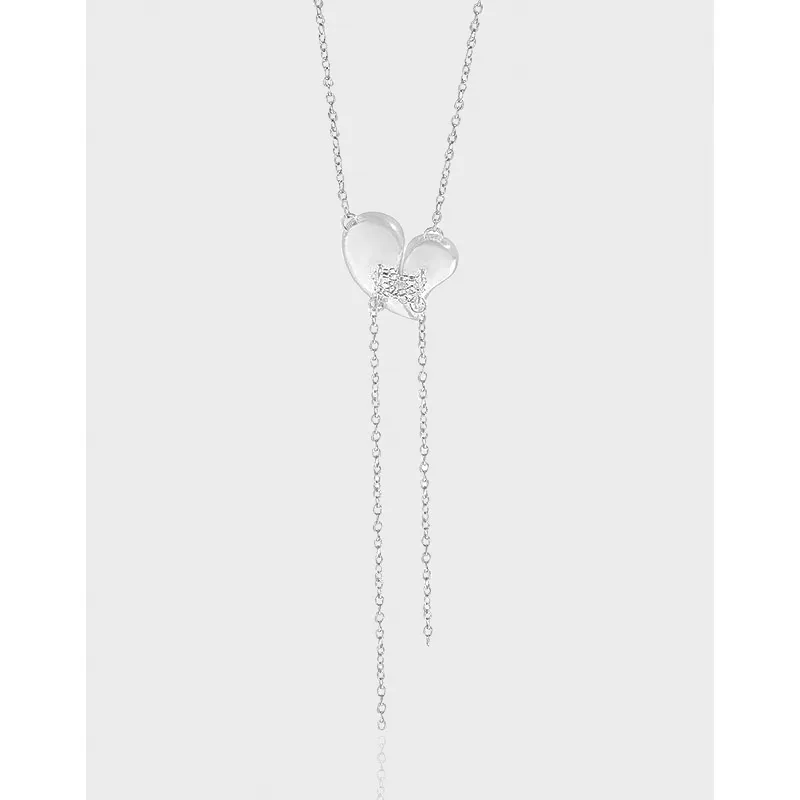 - Color: The necklace showcases a harmonious blend of radiant silver, seen in its delicate chain and intricate central detail, complemented by the crystalline transparency of the heart pendant. This clear element allows light to pass through, creating an airy and luminous effect.