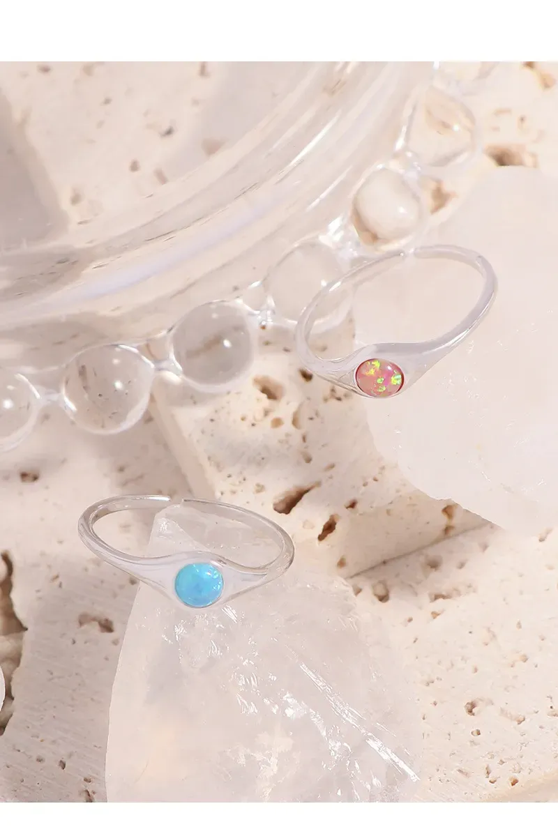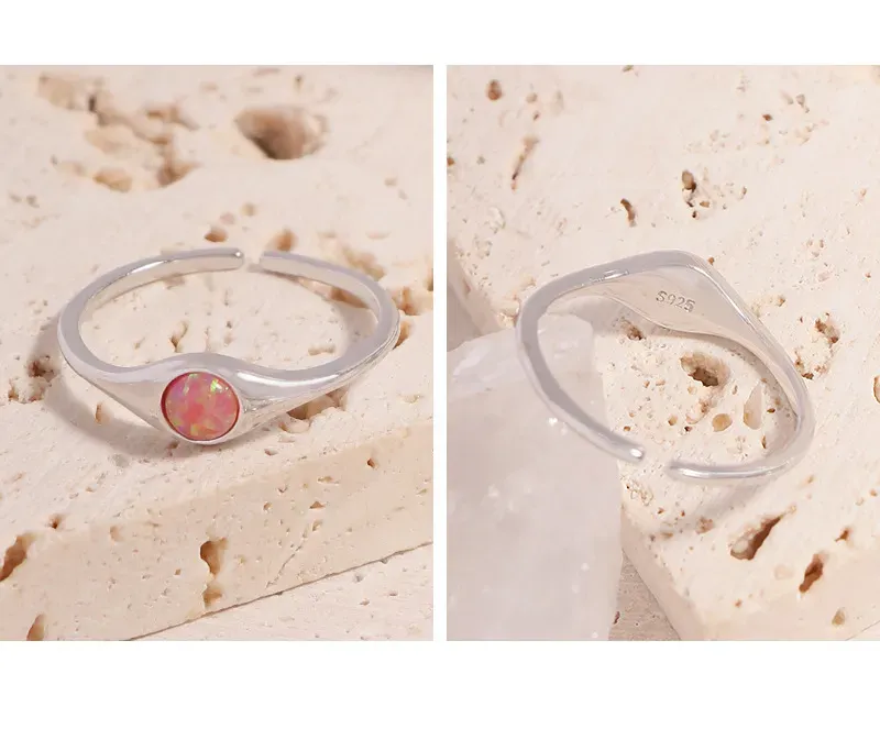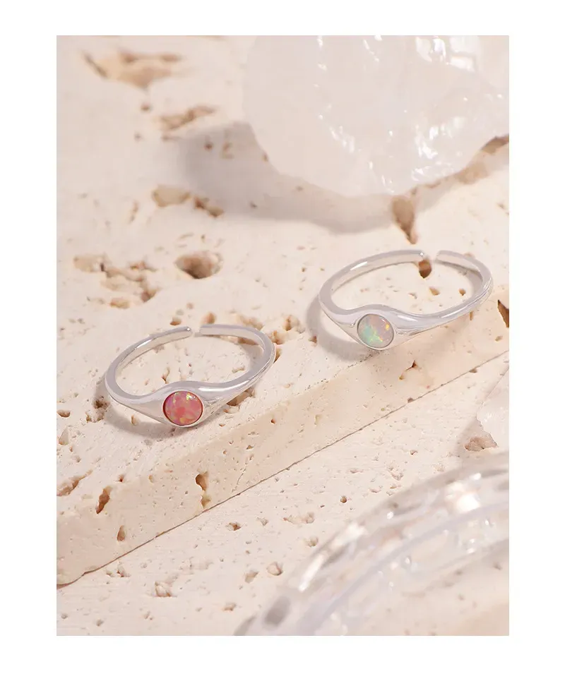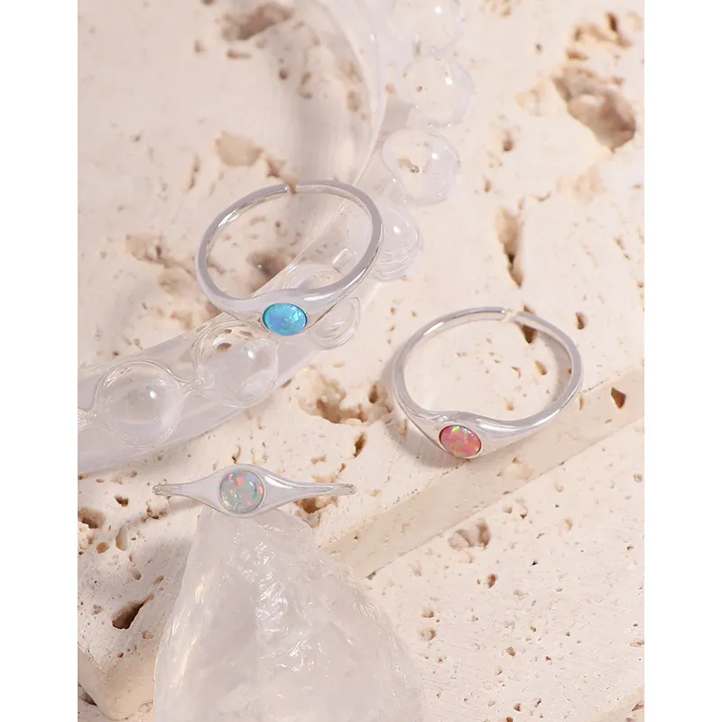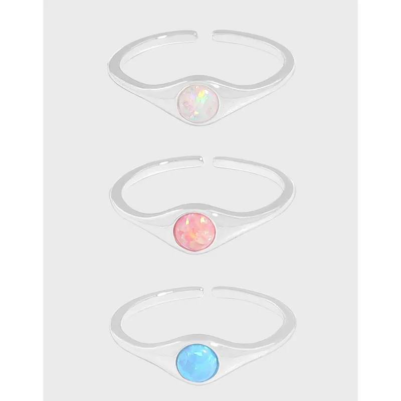 - Color: Crafted from polished silver-tone metal, the band provides a sleek, timeless base. Each Selune Ring features a vibrant, smooth cabochon opal available in three ethereal hues, reflecting Malisse’s celestial palette: