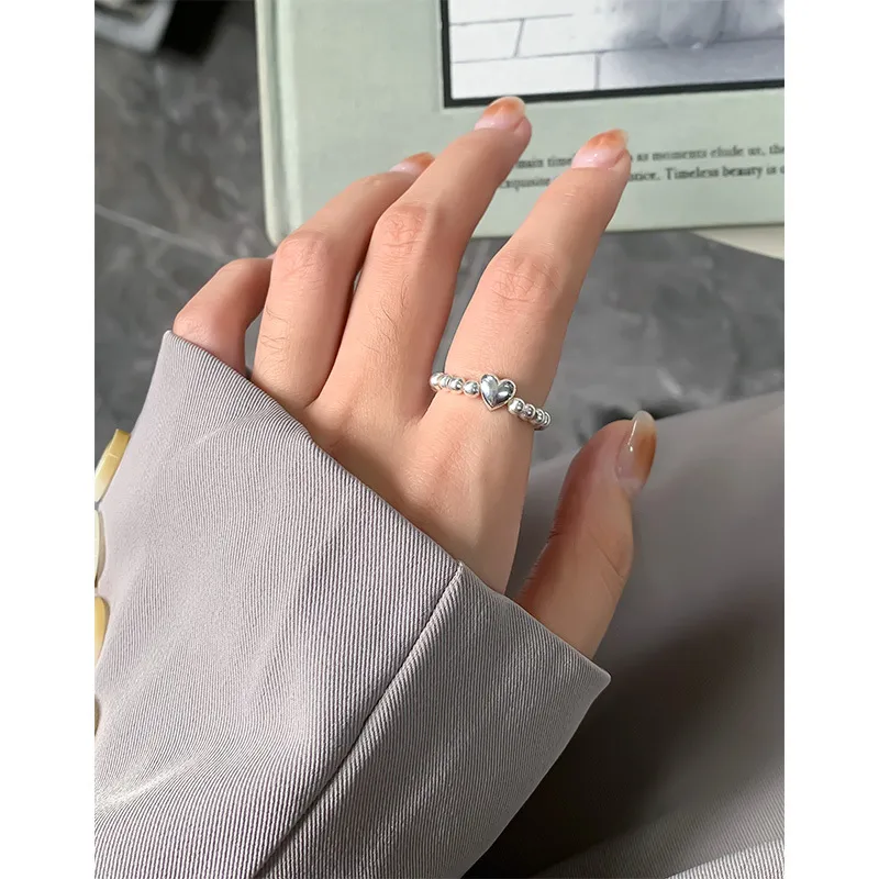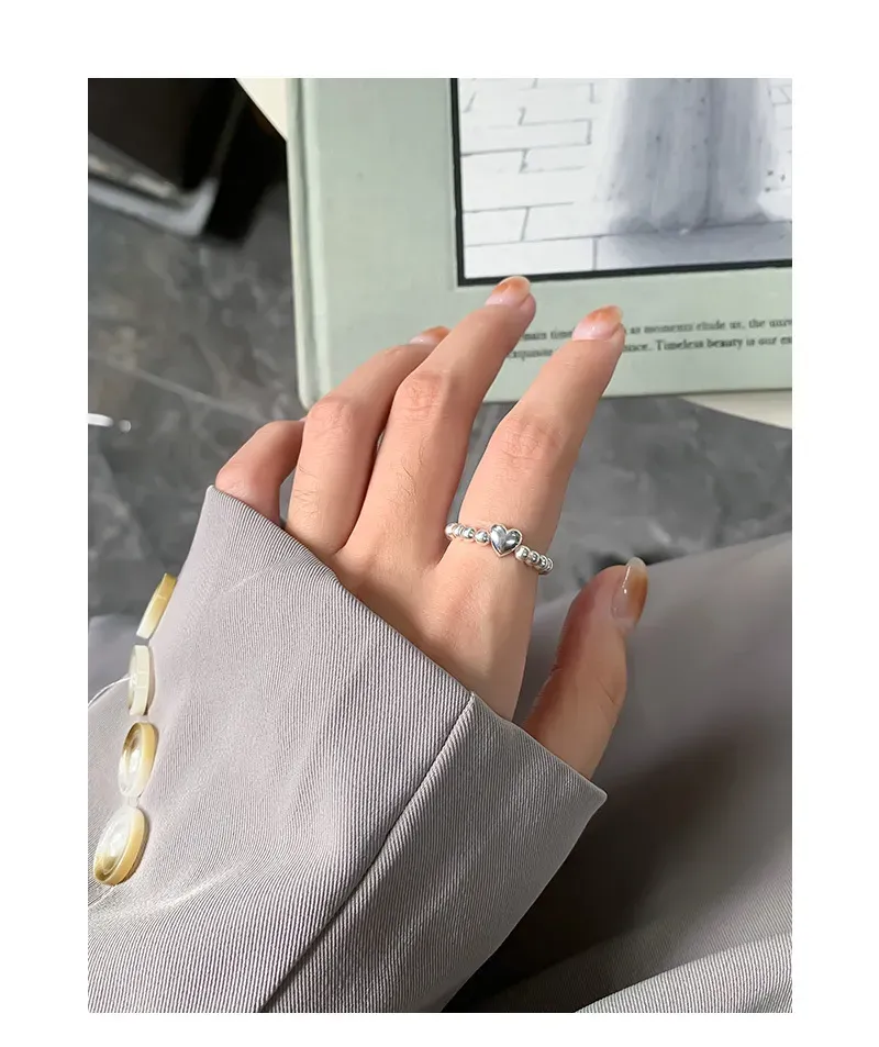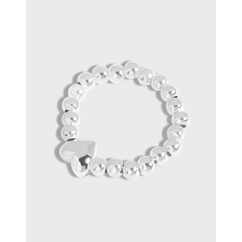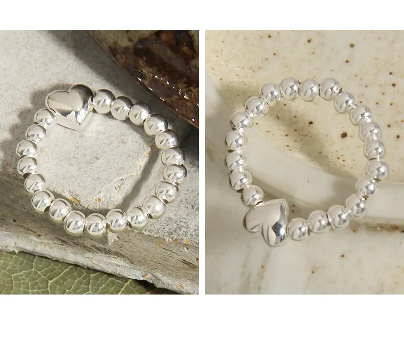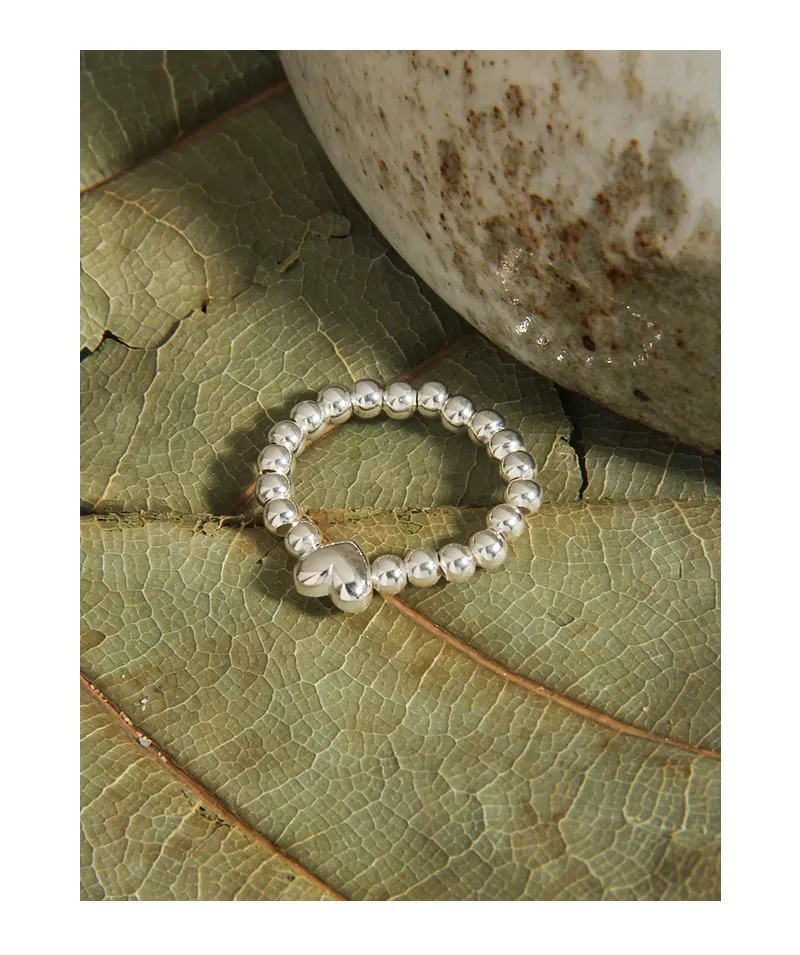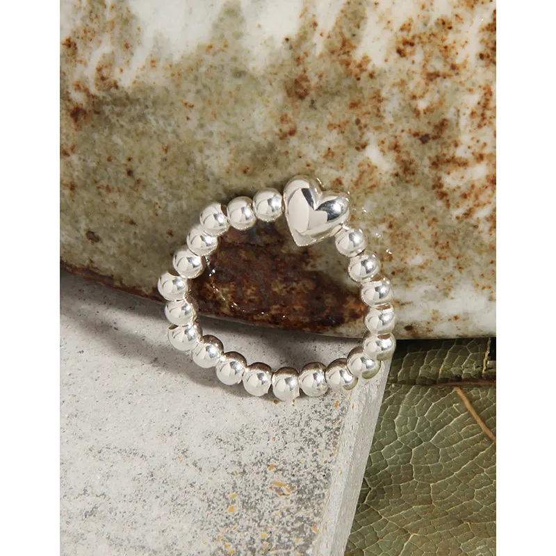 • **Overall Aesthetic:** The ring’s flexible beaded construction offers a comfortable fit, while its clean lines and organic heart shape evoke the timeless beauty and fluid forms inspired by nature and the celestial glow.
