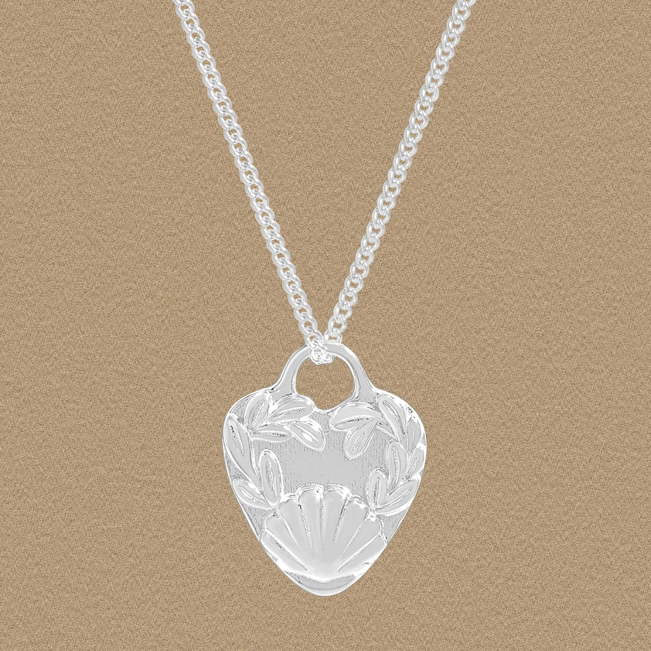 Embrace the timeless allure of nature with the Malisse Silver Heart & Shell Pendant Necklace. This exquisite piece beautifully captures the essence of the earth and sea, designed for those who appreciate organic elegance and natural artistry.