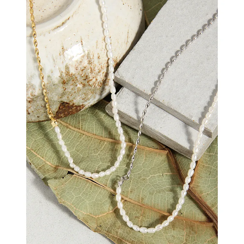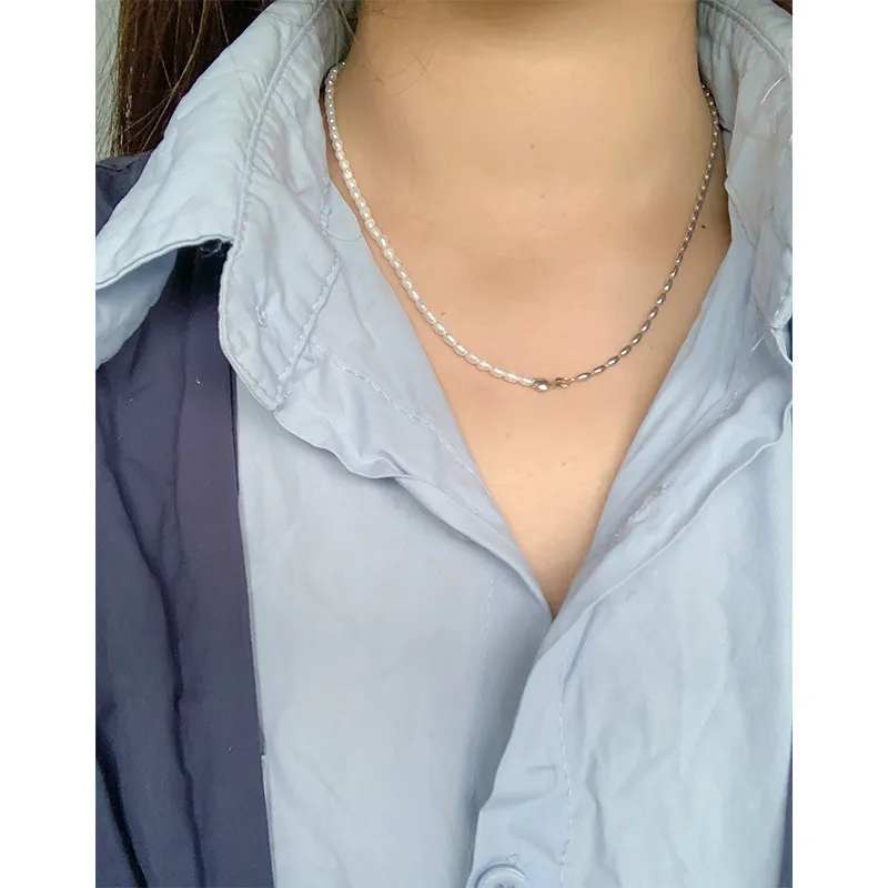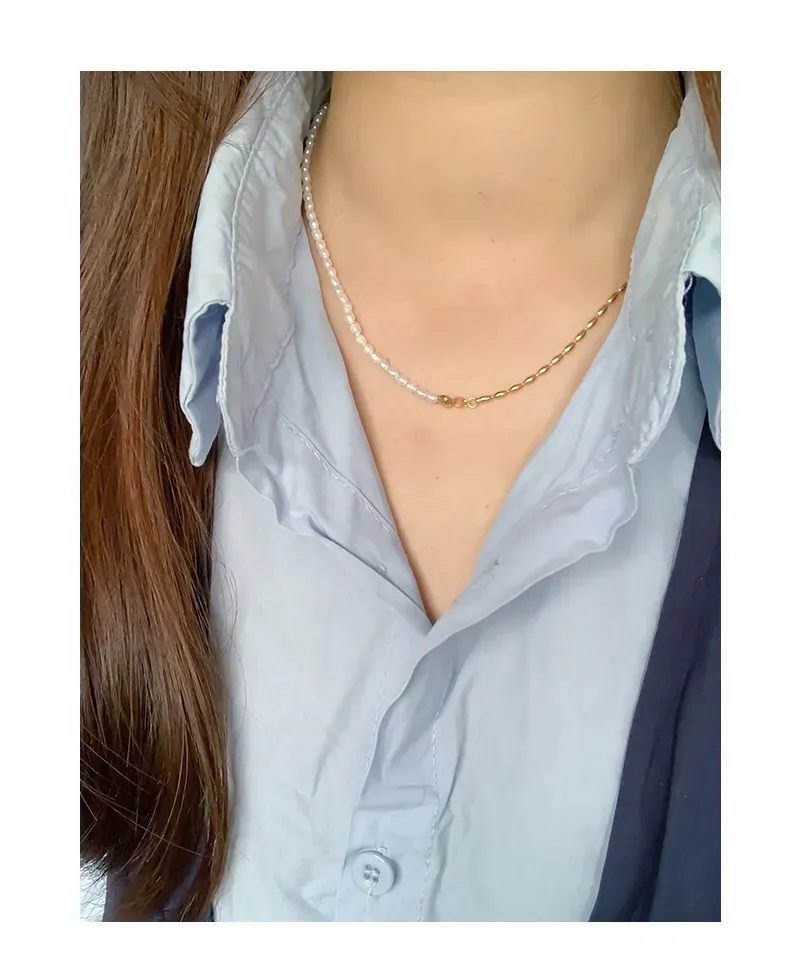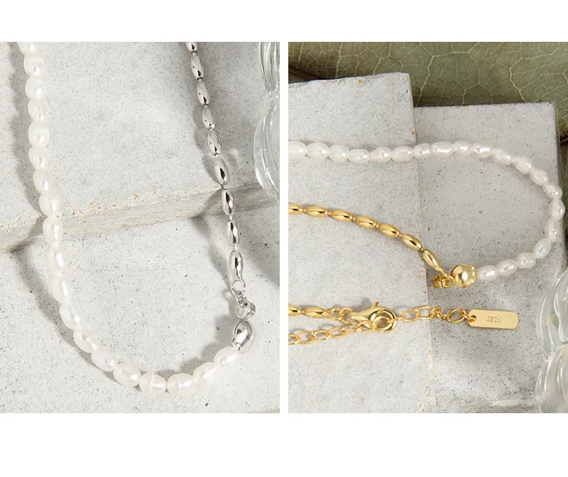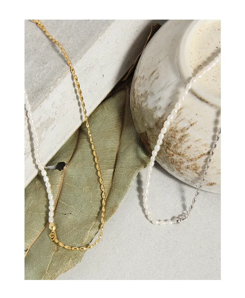 • Contemporary Pattern & Texture: The gold section introduces a sleek, elongated oval link pattern, providing a delicate yet distinct texture that complements the organic pearls. This thoughtful blend creates a harmonious and captivating design.