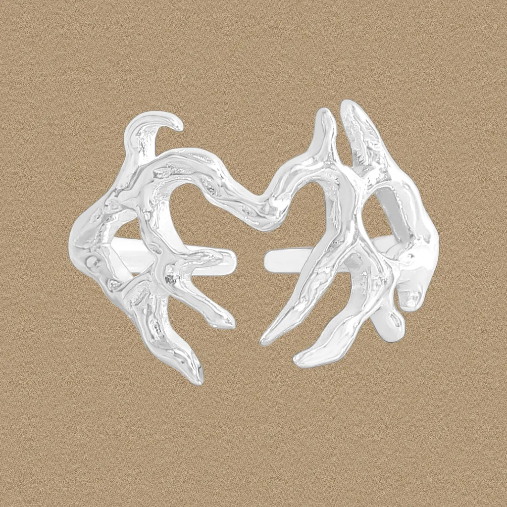A true ode to nature’s magic, this Malisse ring is sculpted from radiant silver. Its design embodies a striking organic fluidity, taking the abstract form of intertwining branches or delicate coral formations that gracefully converge into a symbolic heart.