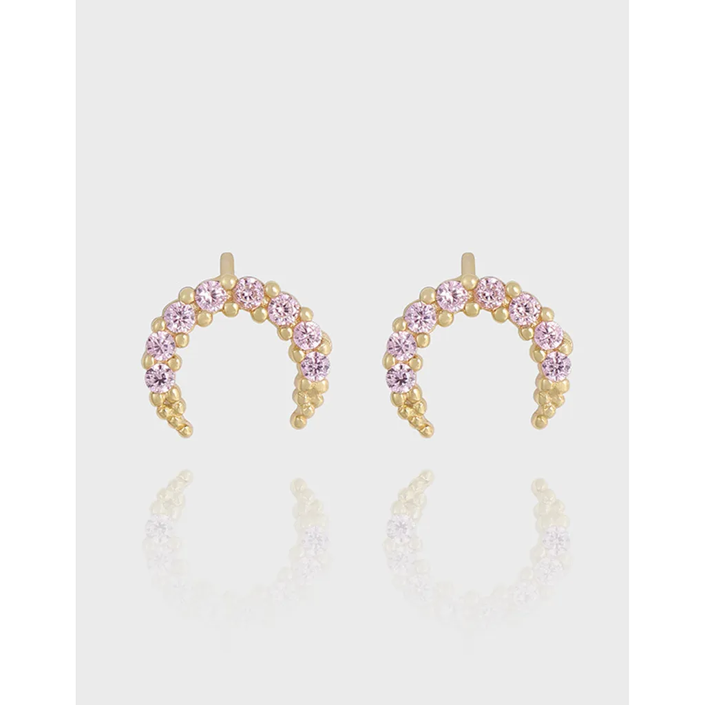 Embrace the celestial wonder with Malisse’s Pink Zircon Crescent Studs, a delicate ode to nature’s magic and the cosmos. Inspired by the fluid shapes and captivating hues of the aurora borealis, these earrings capture an ethereal glow, reminiscent of dawn skies or distant starlight.