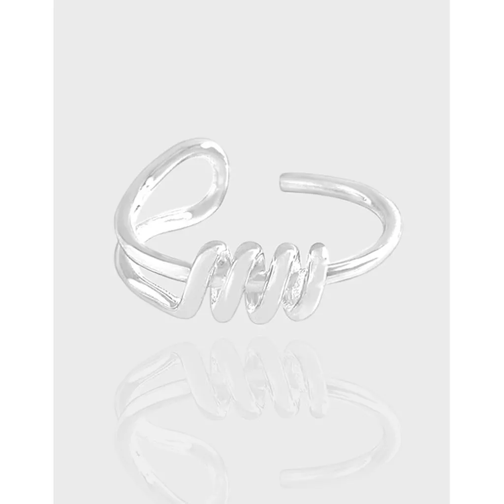 • Patterns or Textures: The central band is adorned with a unique coiled pattern, where smooth silver forms intertwine. This sculptural detail creates a dynamic texture, reminiscent of natural tendrils or the delicate spirals found in nature’s artistry.
