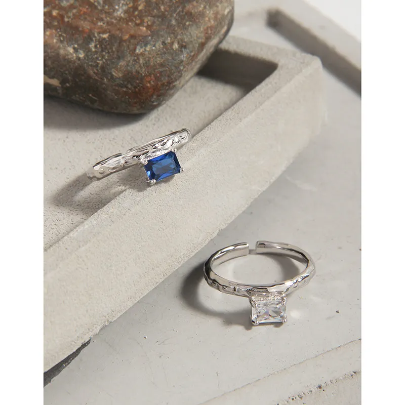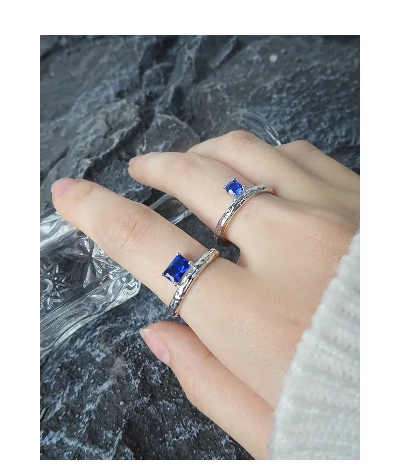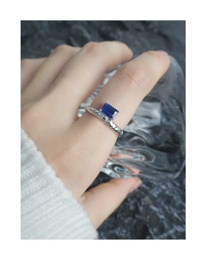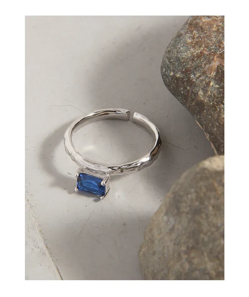 - Color: A striking, deep blue rectangular gemstone, complemented by the gleaming silver-tone finish of the metal.
