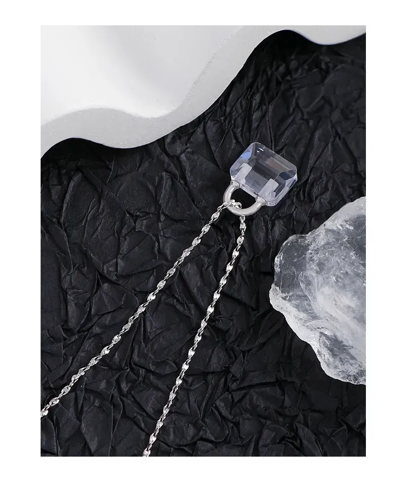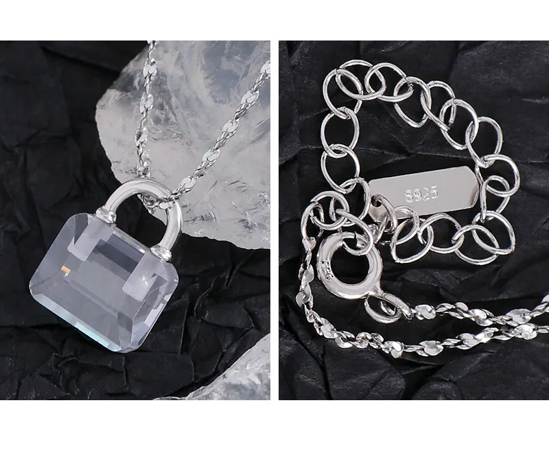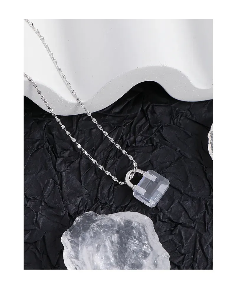 - Color: The necklace features a brilliant silver-toned chain that gracefully complements the transparent, crystal-clear pendant. The pendant itself subtly catches light, creating prismatic flashes of soft, celestial hues.