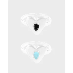 - Color: The polished silver-toned band and heart serve as a luminous canvas, offering a choice of two enchanting teardrop gemstones: a deep, mysterious black that captures the quietude of the night sky, or a vivid, light blue that reflects the serene brilliance of distant stars.