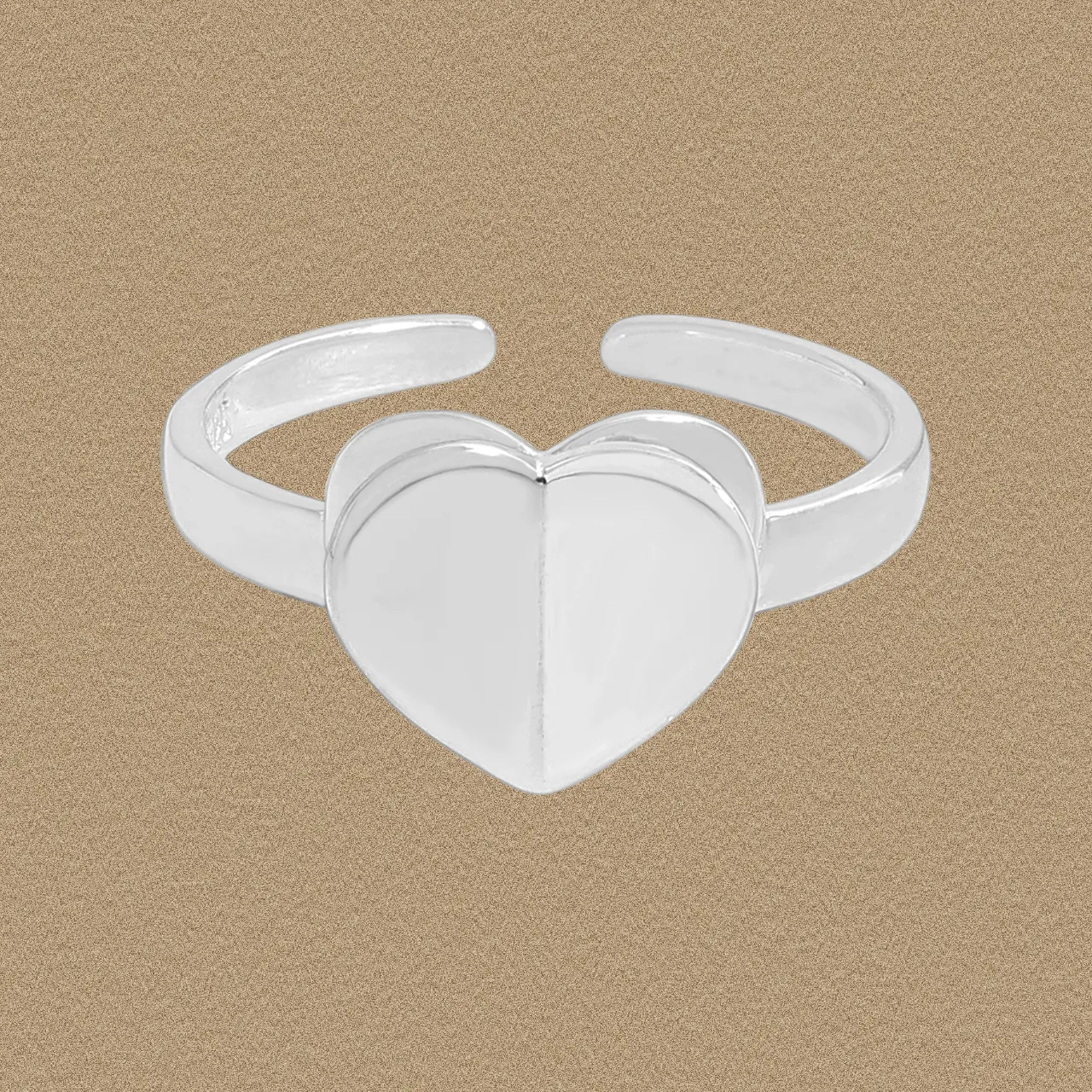 Sleek Silver Heart Adjustable Band Ring