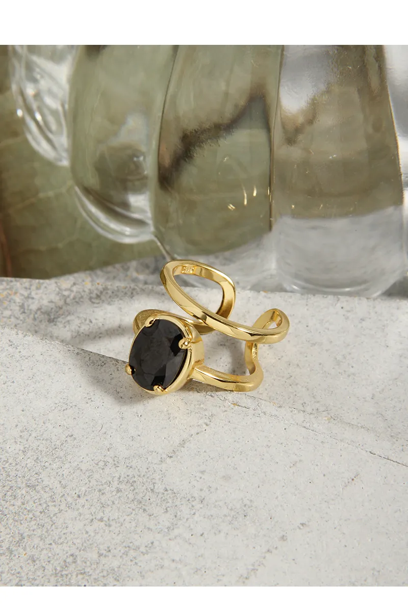 Embrace the timeless allure of Malisse with our Celestial Onyx Gold Ring, a piece that beautifully balances modern design with nature’s profound mystery.