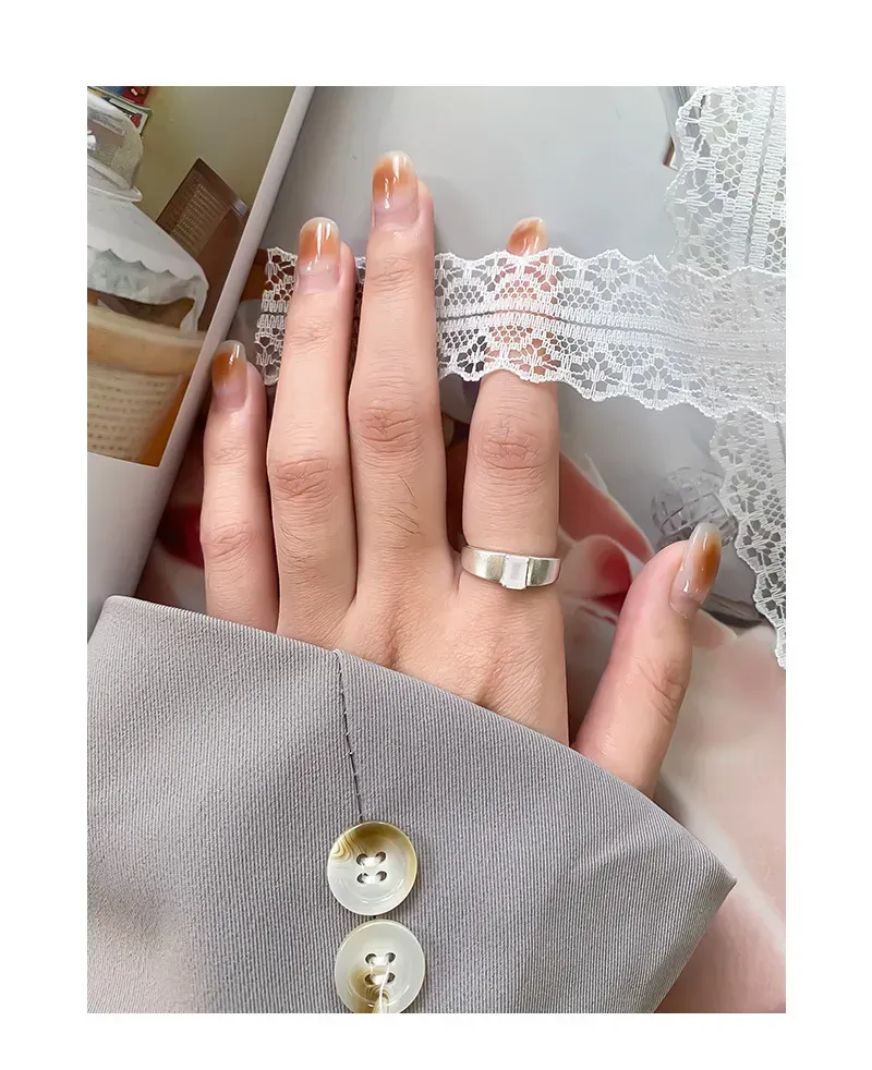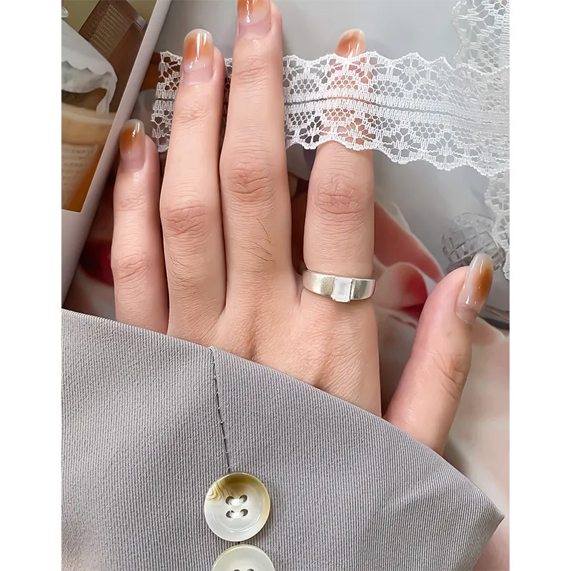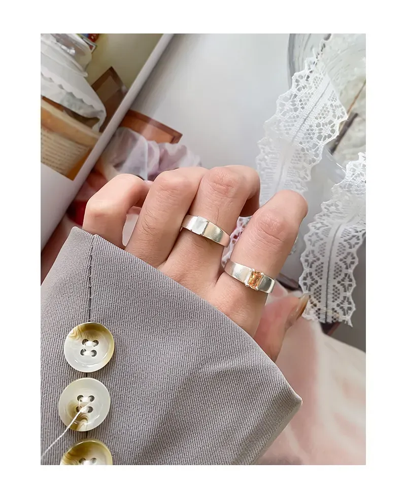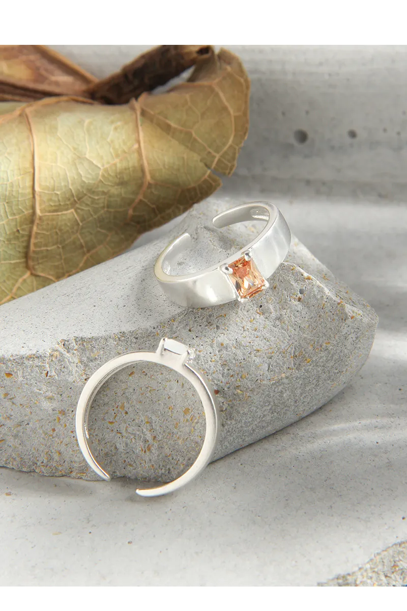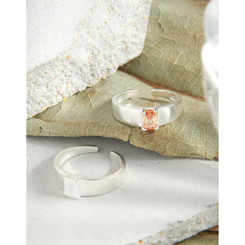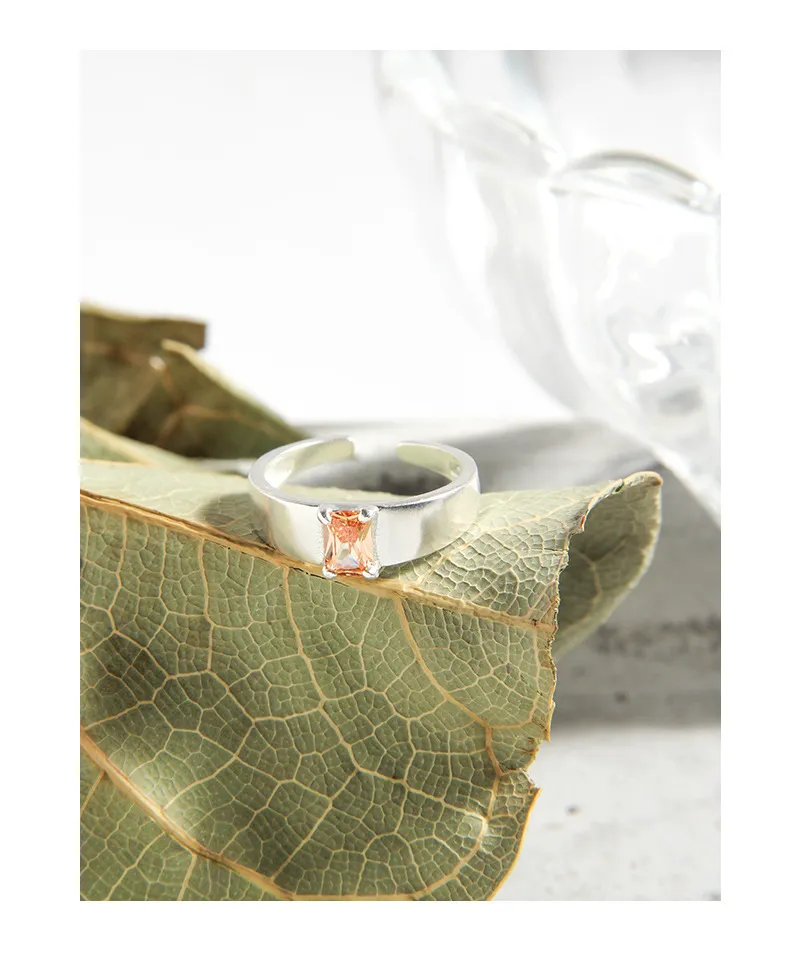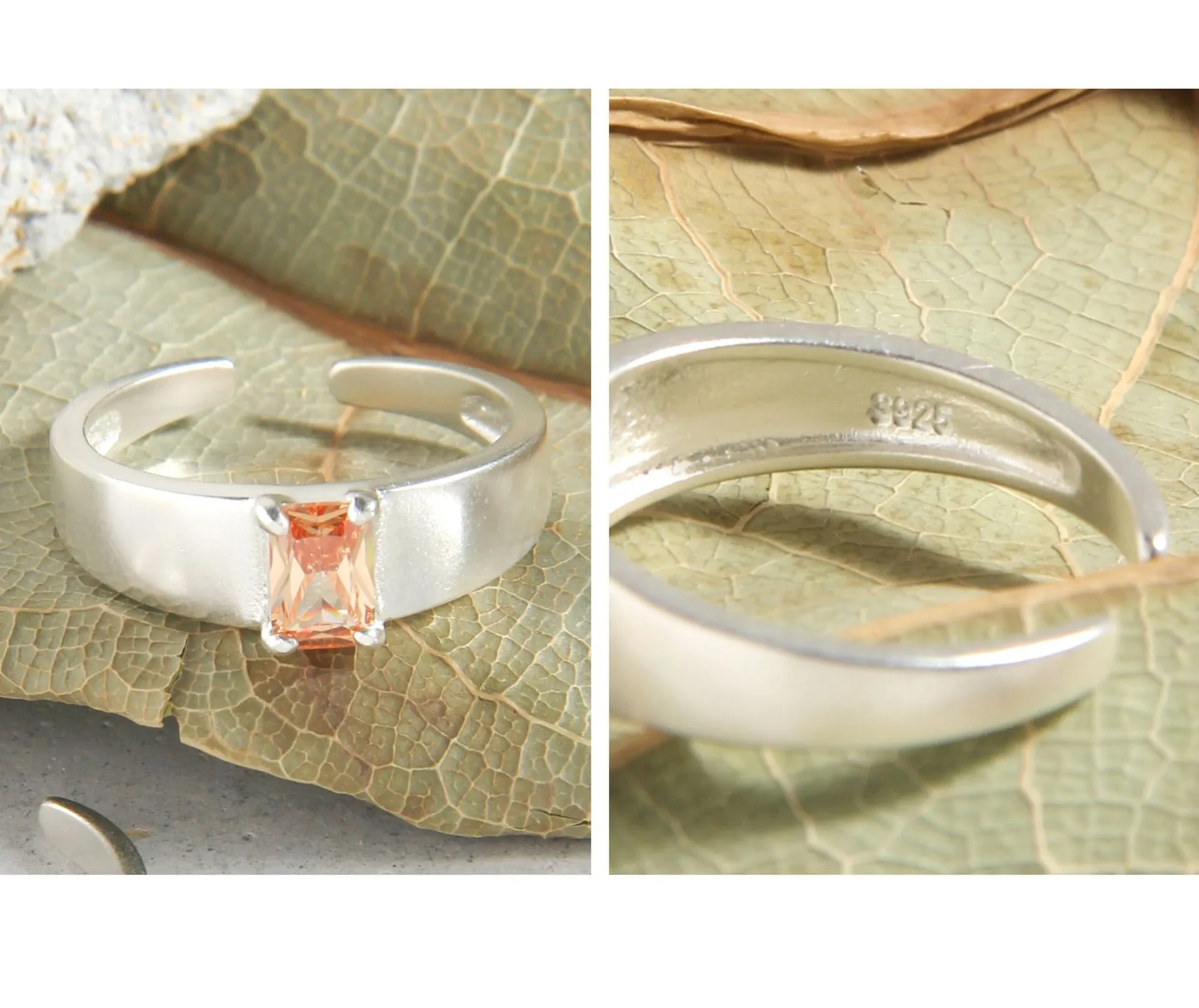 - Color: The ring band boasts a radiant, polished silver finish. It is exquisitely adorned with a central rectangular gemstone, available in a warm, translucent orange hue, or a luminous, milky white.