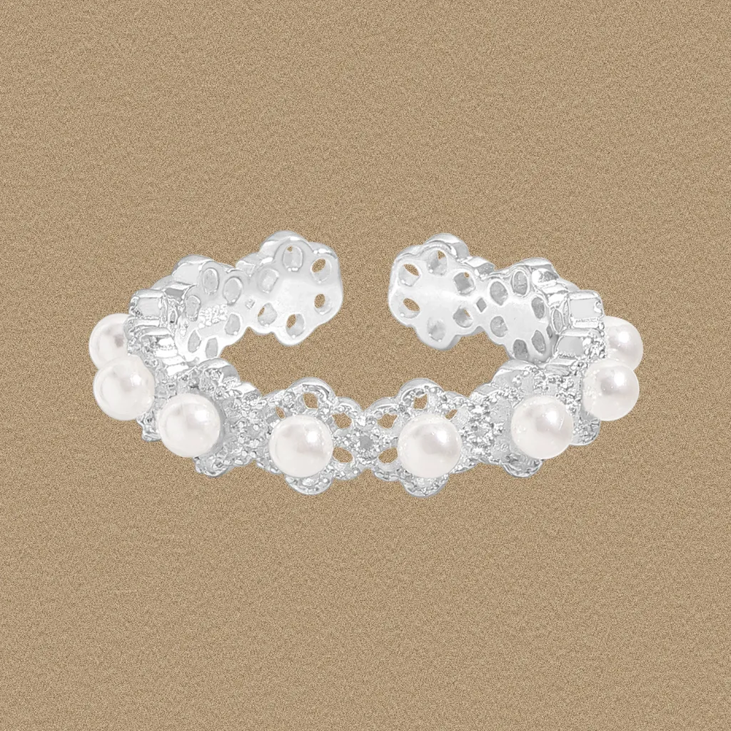 - Color: The ring features a radiant silver hue, beautifully complemented by a series of lustrous, cream-white pearls.